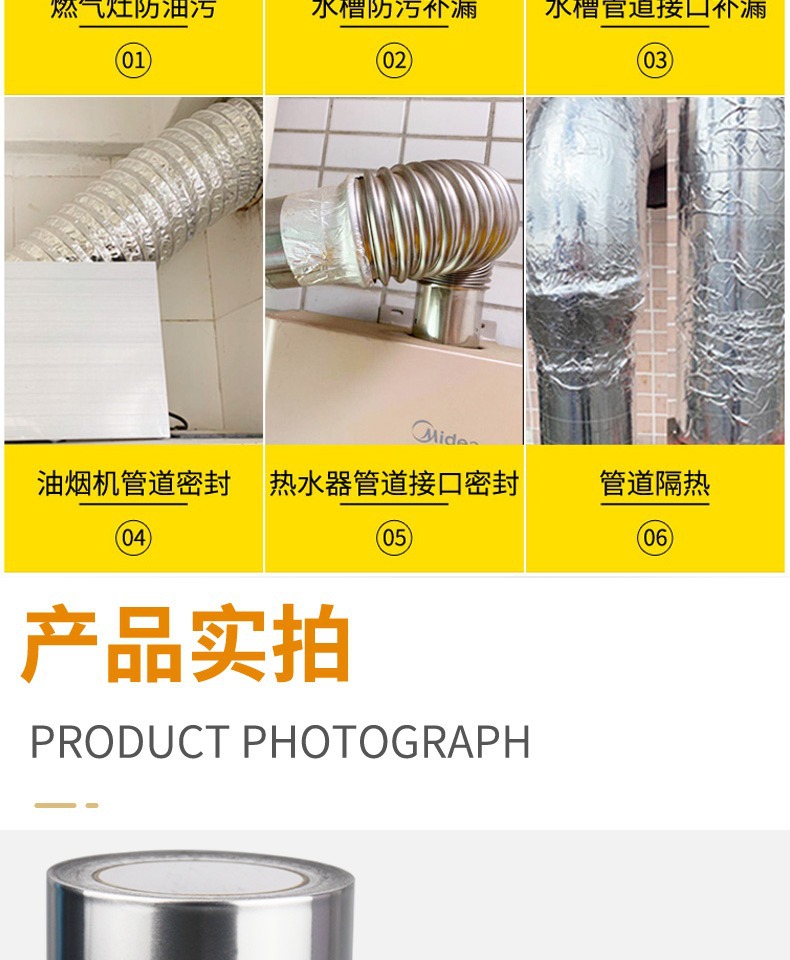 알루미늄 호일 테이프 두껍게 고온 저항 알루미늄 호일 파이프 보호 씰 방수 자외선 차단제 고접착 노화 방지 제조 업체 사용자 정의스토어 가기
