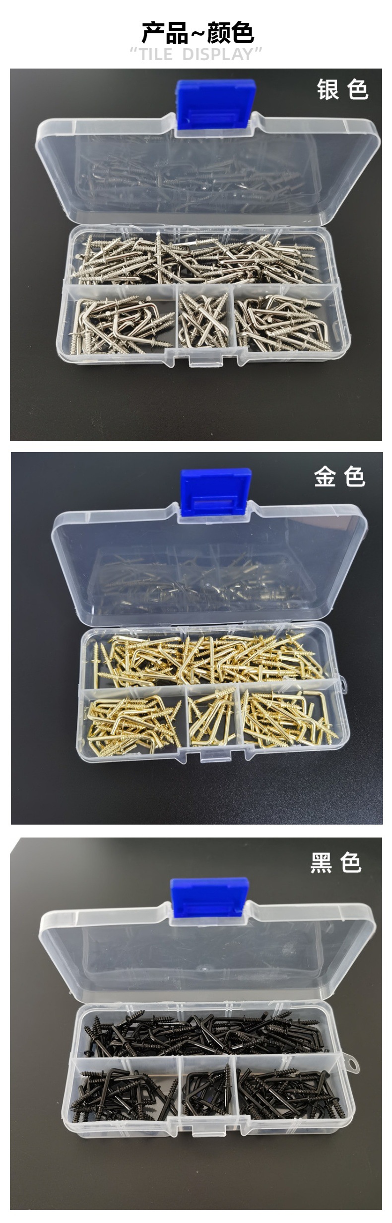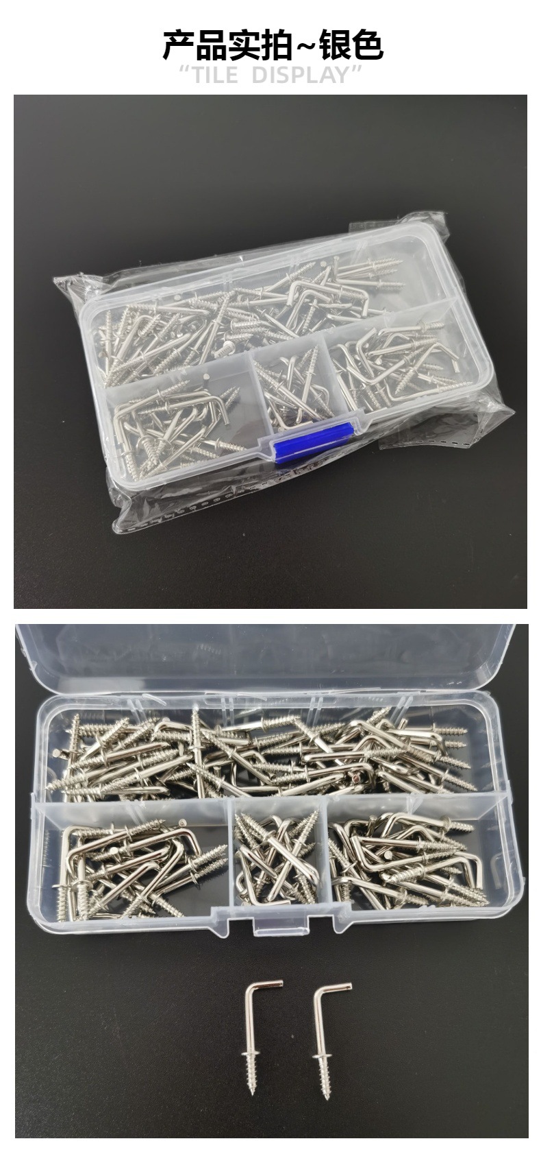 크로스 보더 아마존 100 개 3/4 인치 직각 후크 셀프 태핑 나사 사각 후크 키트 금색과 실버 검은 컵 후크 후크스토어 가기
