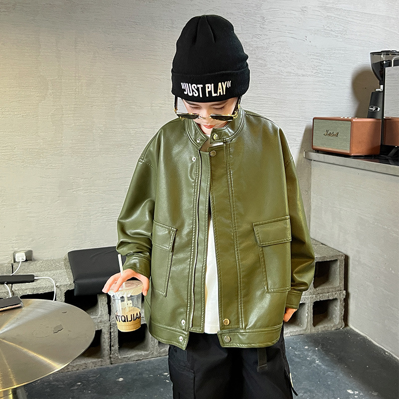 외국 무역 아동복 소년 스탠드 칼라 가죽 캐주얼 코트 큰 어린이 봄과 가을 패션 재킷 도매의 한국어 버전