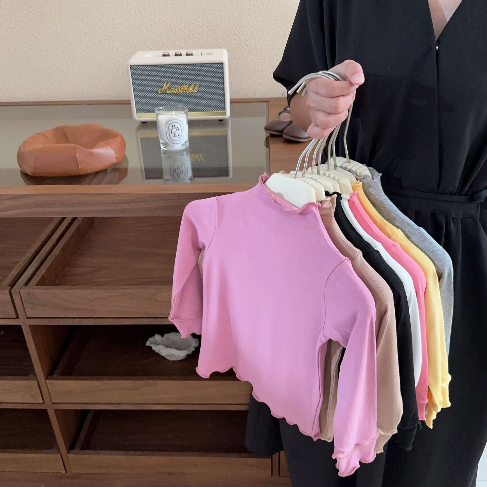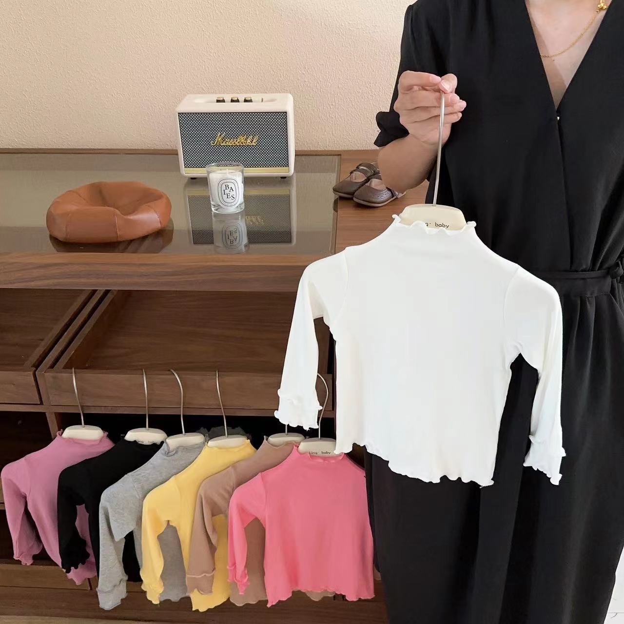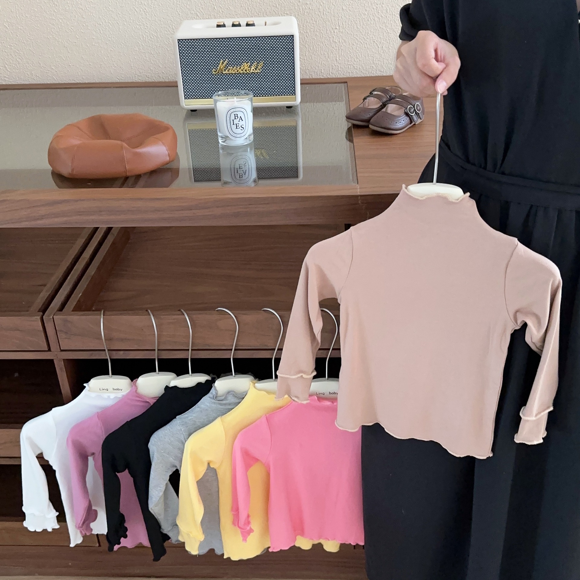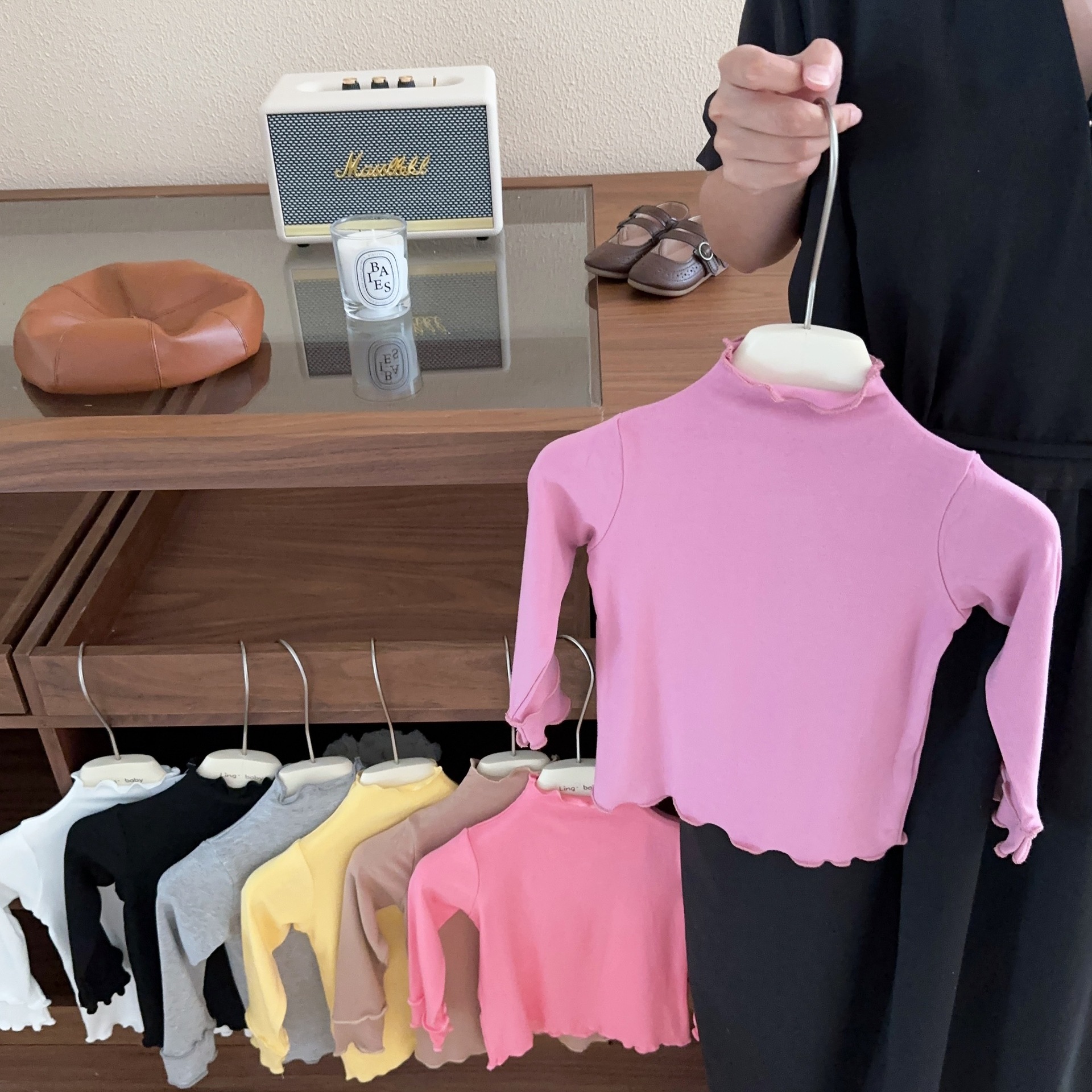 아동복 여아 긴팔 티셔츠 2023 가을 새 아동베이스 셔츠 아기의 가을 옷 하프 하이 칼라 78062
