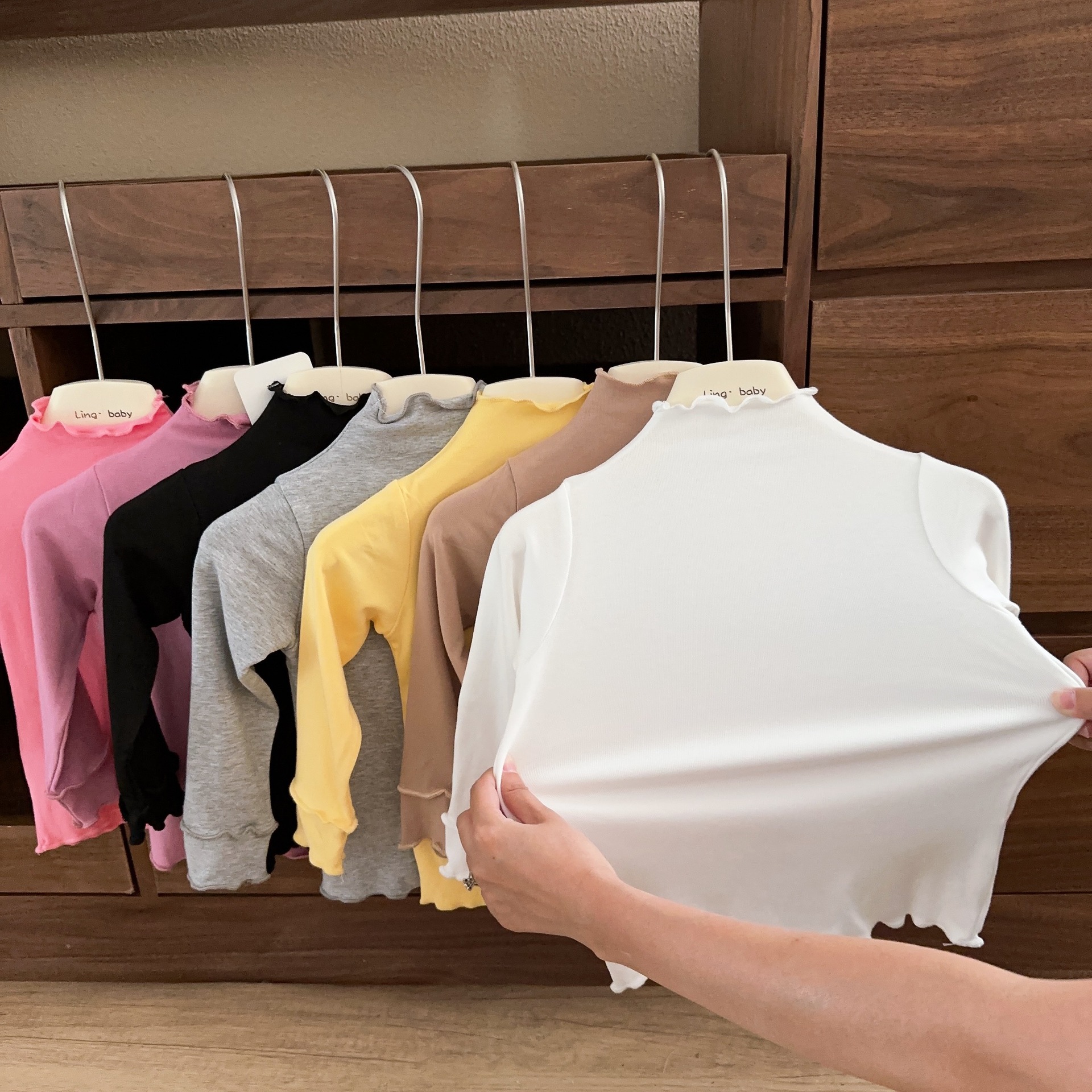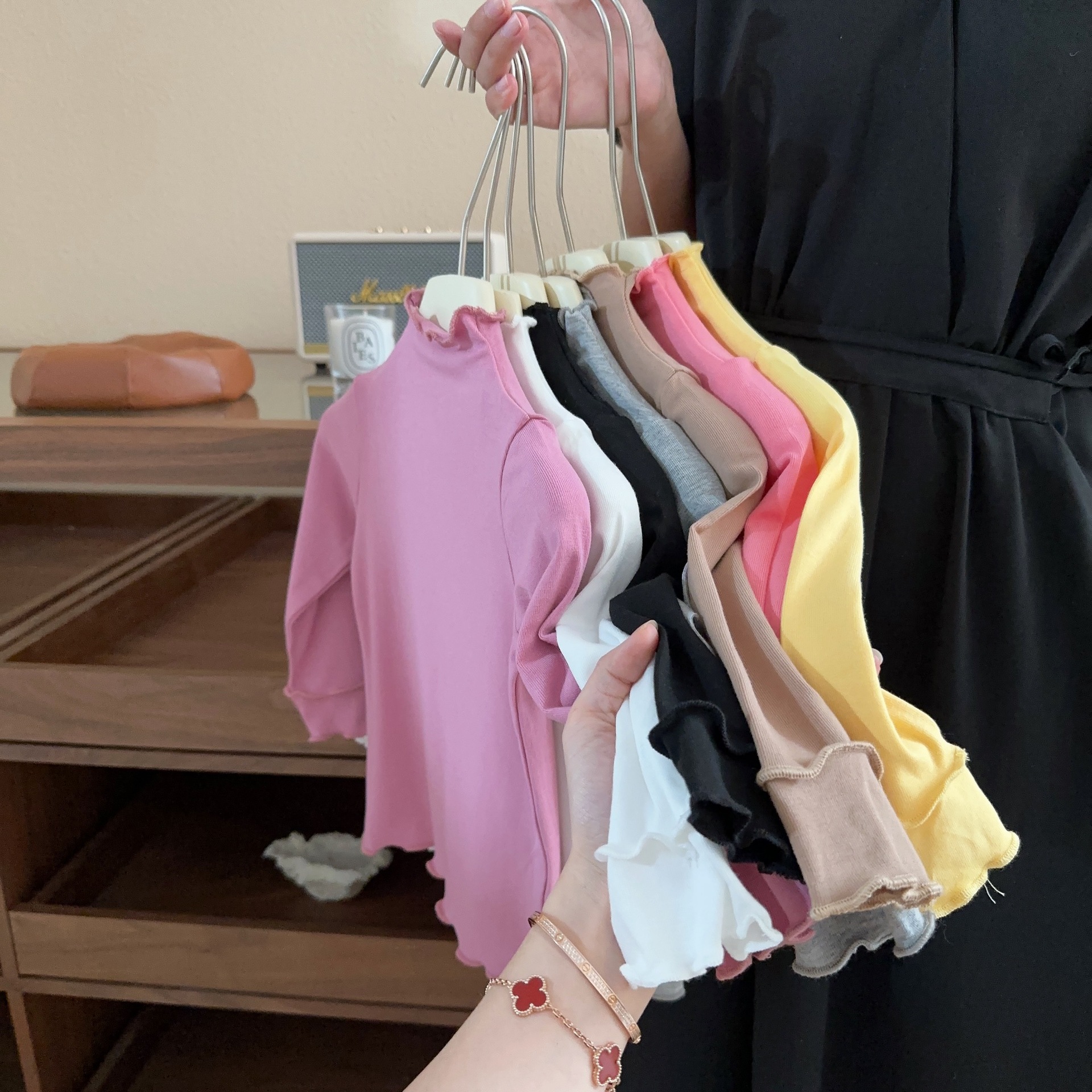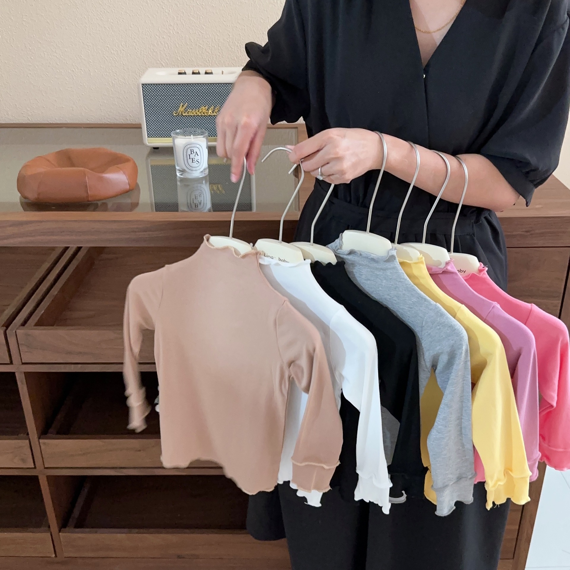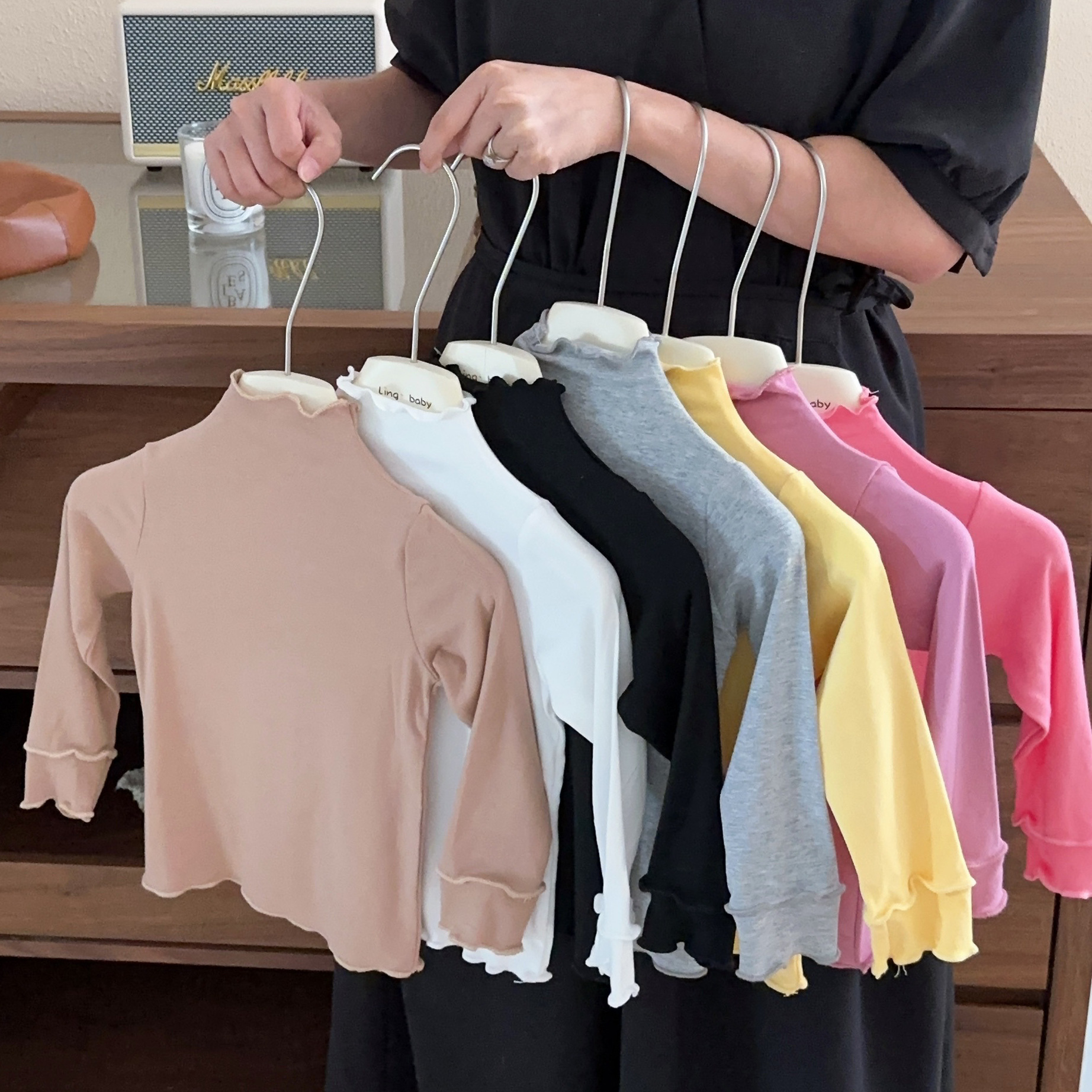 아동복 여아 긴팔 티셔츠 2023 가을 새 아동베이스 셔츠 아기의 가을 옷 하프 하이 칼라 78062