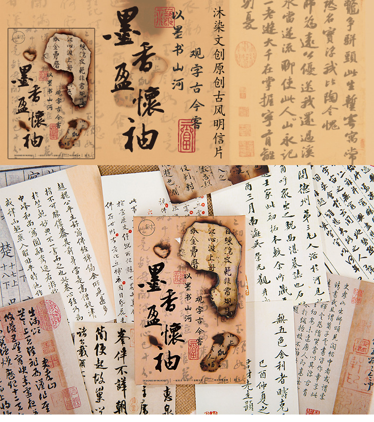 무란 문화창의 엽서, 잉크향이 손에 묻는 중국풍 축하 카드, 학생들을 위한 작은 선물, 축복 메시지 카드