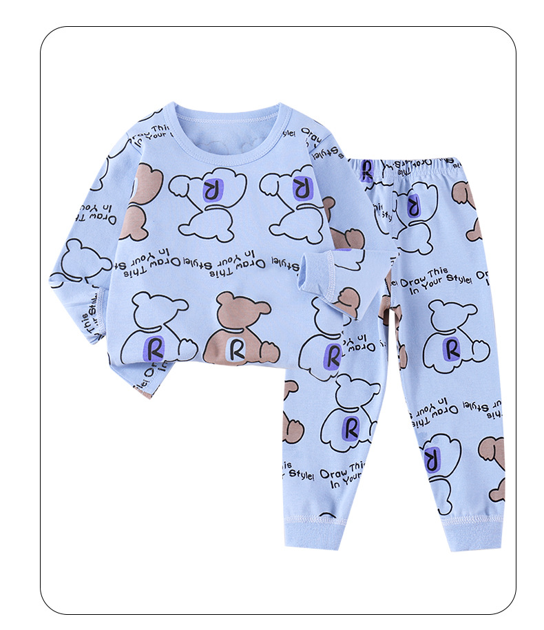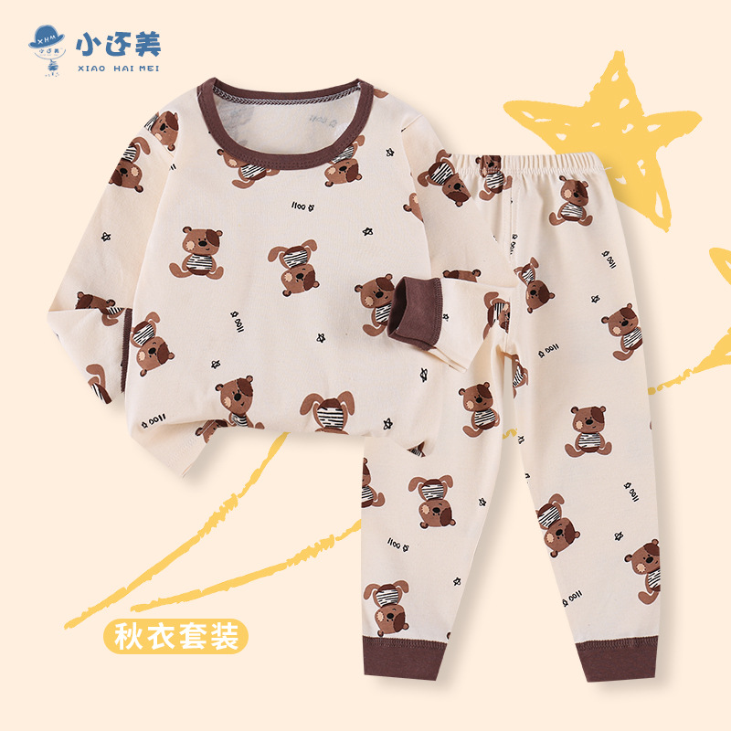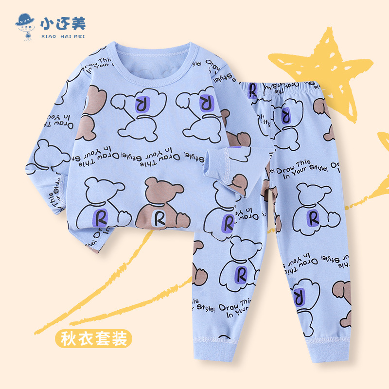 아동용 빗질 면 속옷 세트, 남아용 순면 가을 옷과 긴 바지, 여아용 면 잠옷, 아동복 도매 가정복스토어 가기