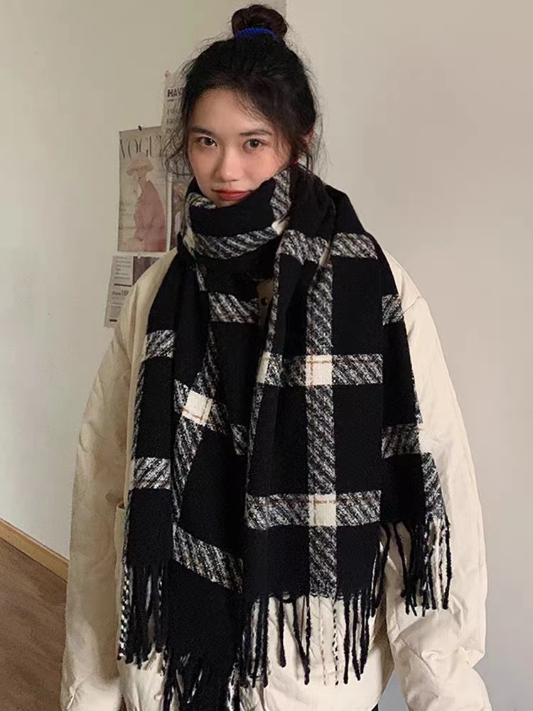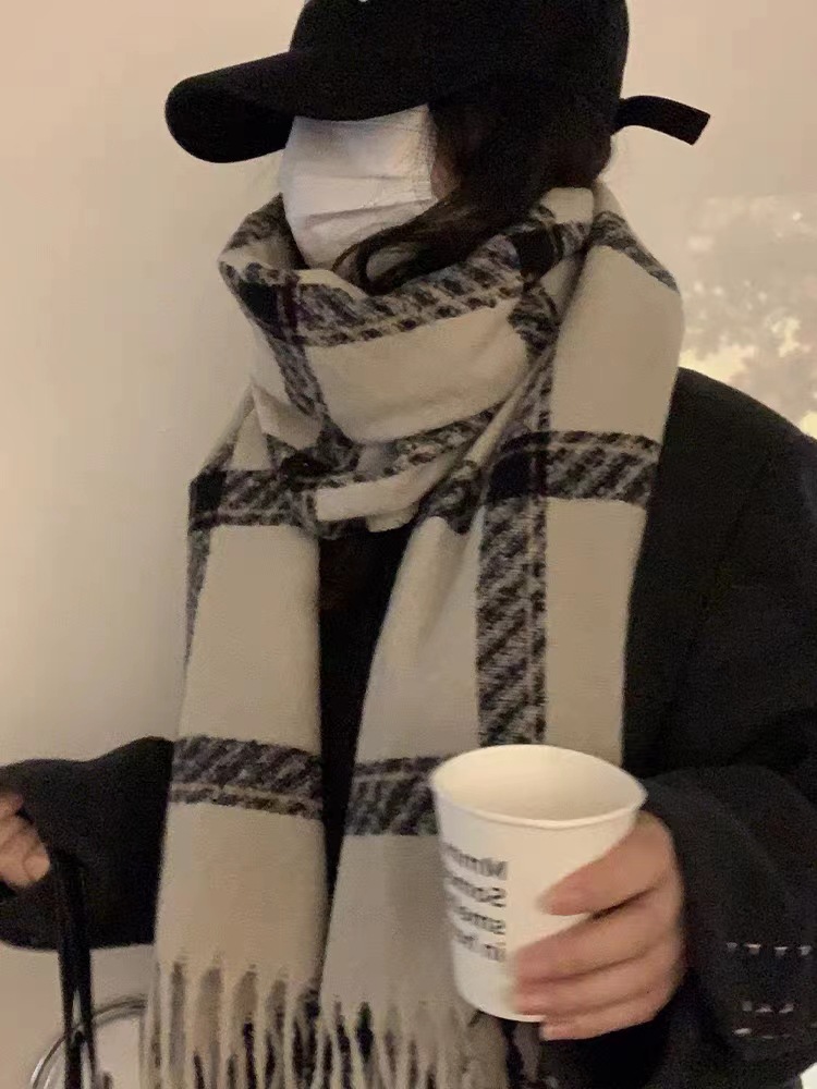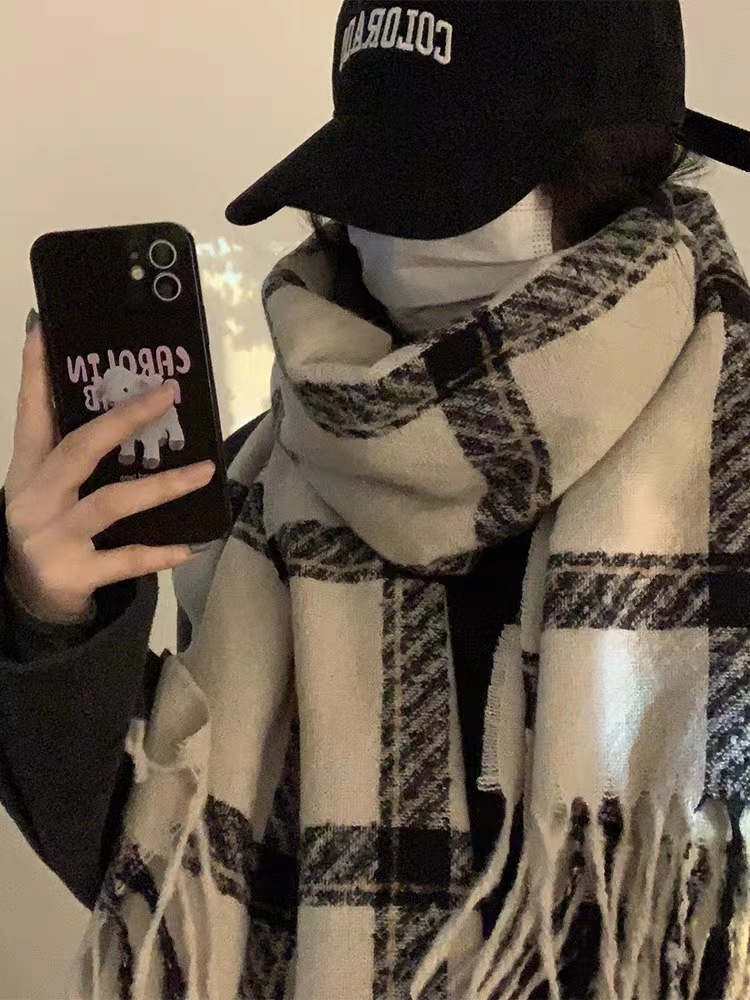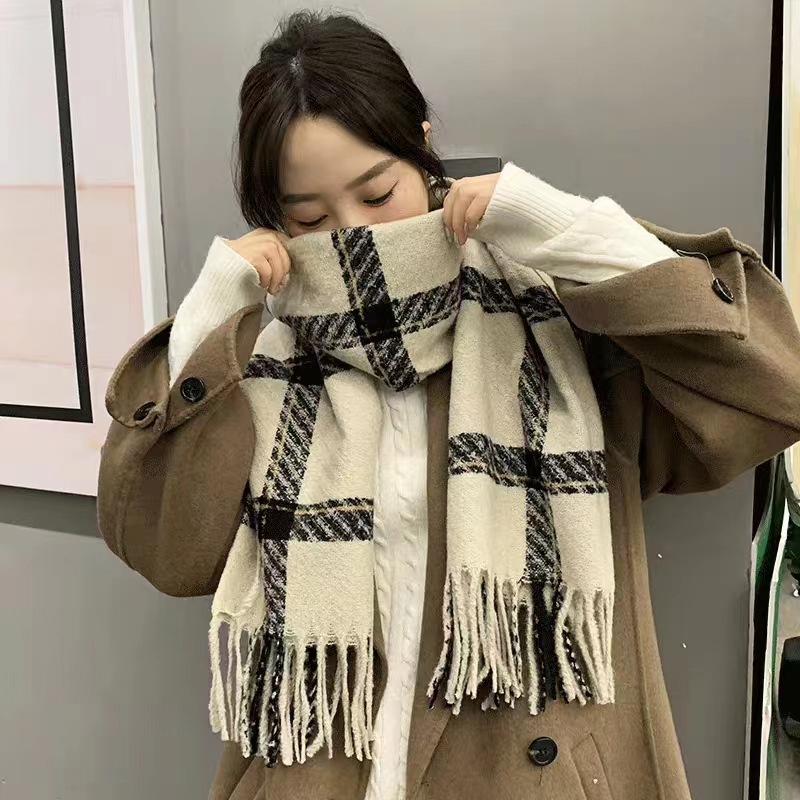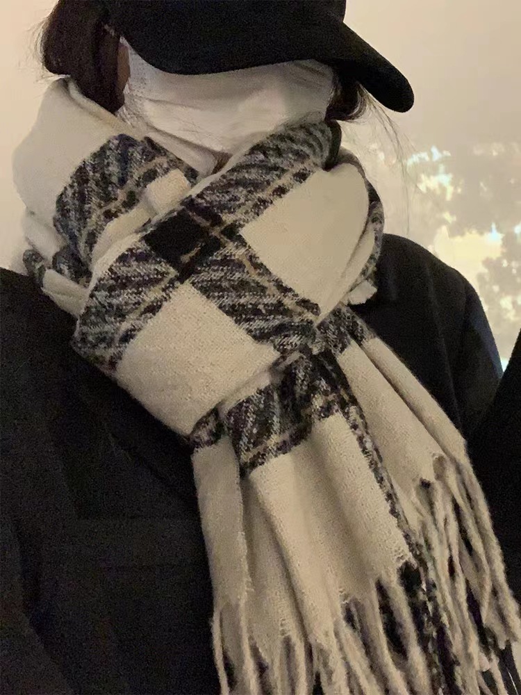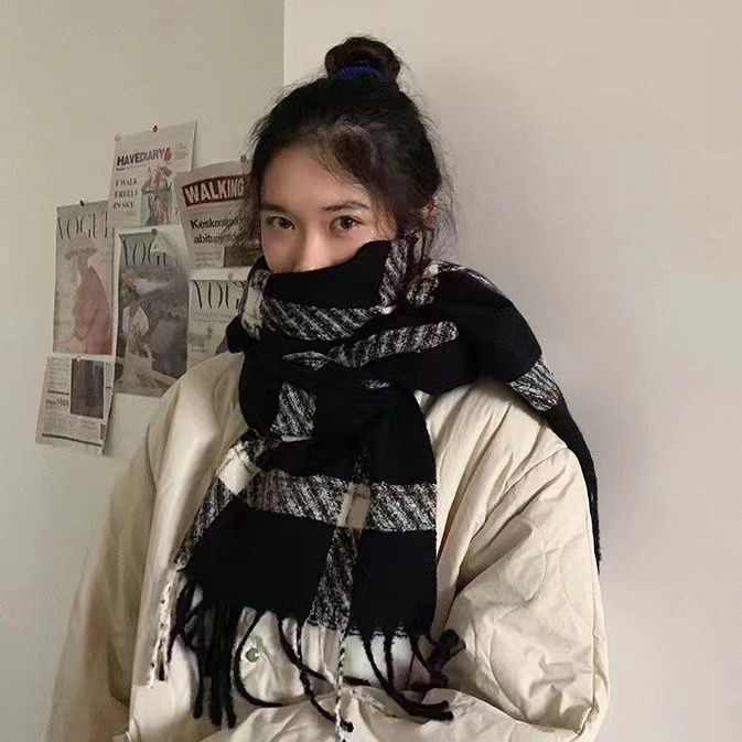 2023 새로운 격자 무늬 스카프 여성의 겨울 복고풍 예술 흰색 부드러운 두꺼운 고등학생 스카프 제조 업체 도매스토어 가기