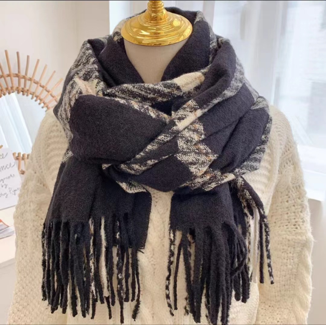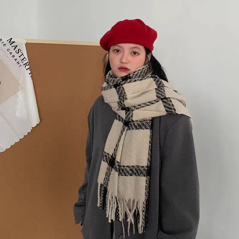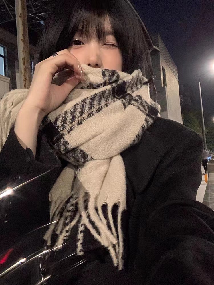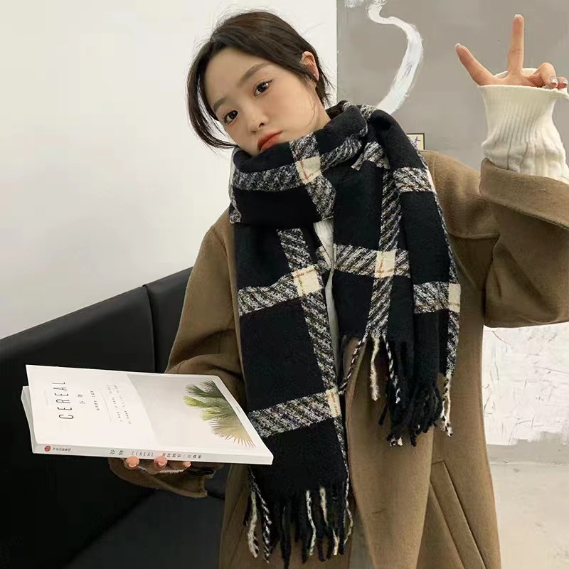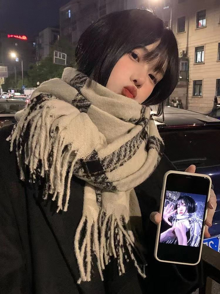 2023 새로운 격자 무늬 스카프 여성의 겨울 복고풍 예술 흰색 부드러운 두꺼운 고등학생 스카프 제조 업체 도매스토어 가기