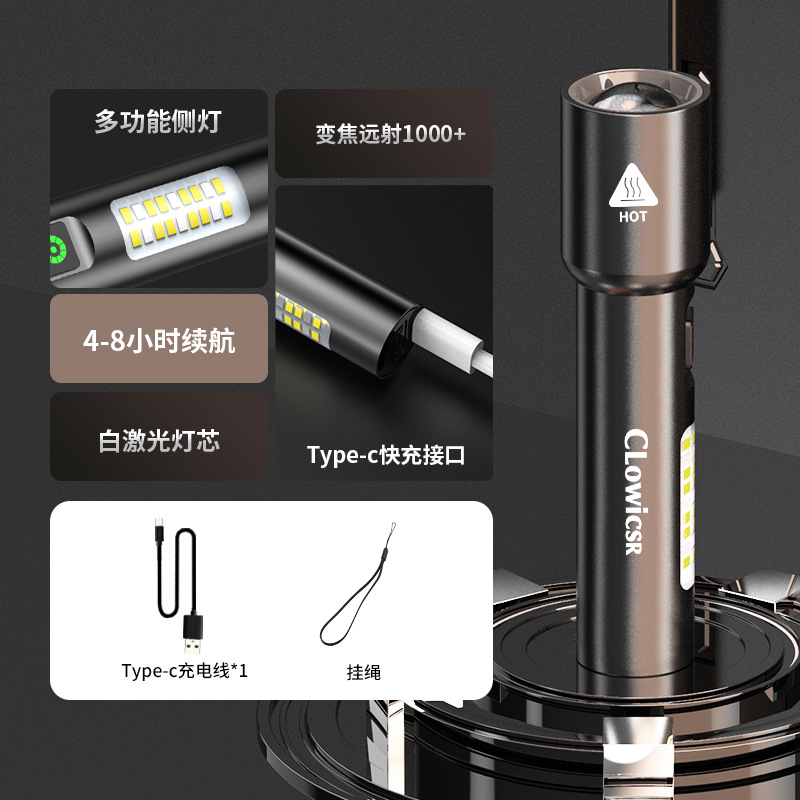 손전등 충전식 슈퍼 브라이트 가정용 야외 소형 휴대용 미니 줌 장거리 마운틴 라이트