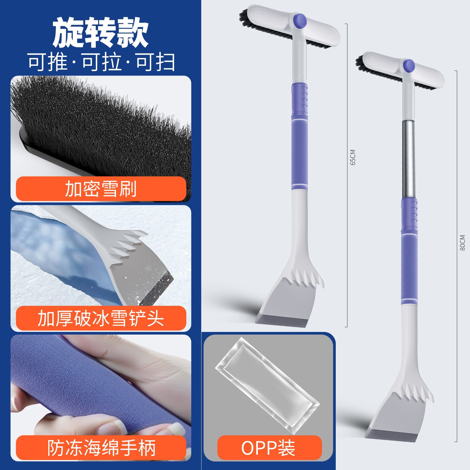 ●除了可以去除汽车上的雪和霜之外,还可以扫刷电动车,自行车以及被大雪被大雪覆盖的房子,玻璃门窗等。