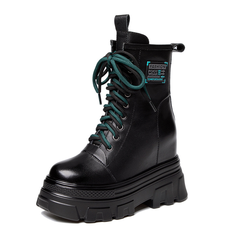 정품 가죽 마틴 부츠 여성 가을과 겨울 2023 새로운 스타일 작은 높이 두꺼운 밑창 짧은 부츠 색상 일치 가죽 플랫폼 하이힐 여성 신발스토어 가기