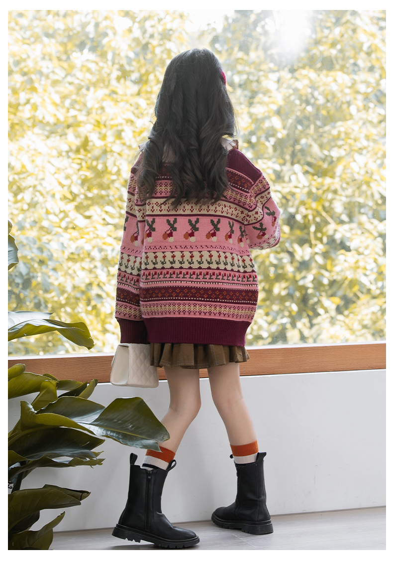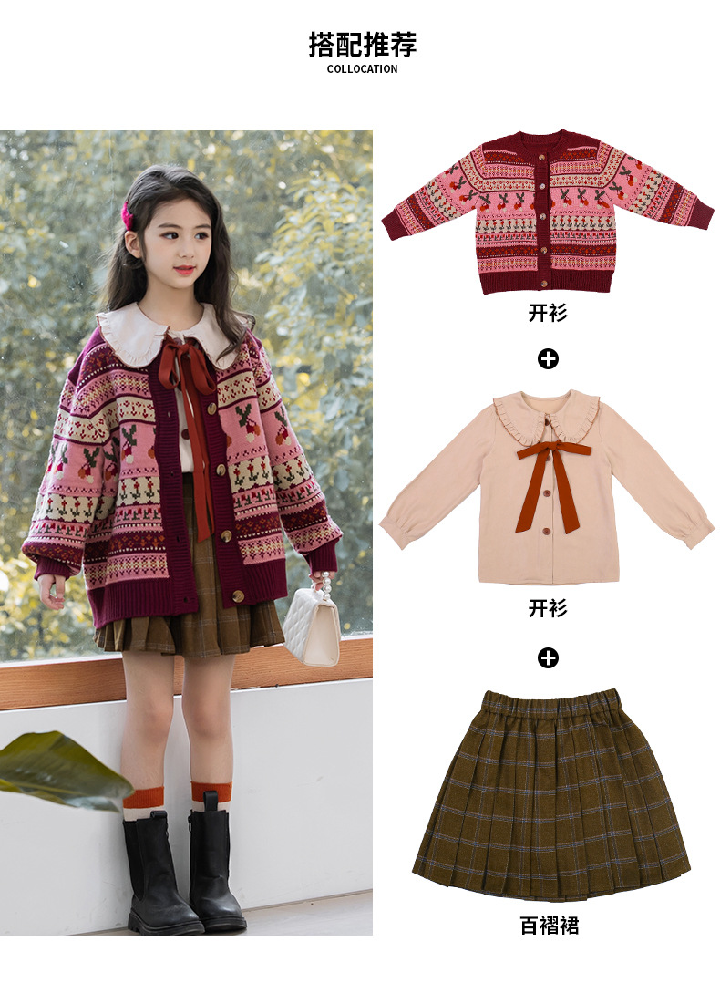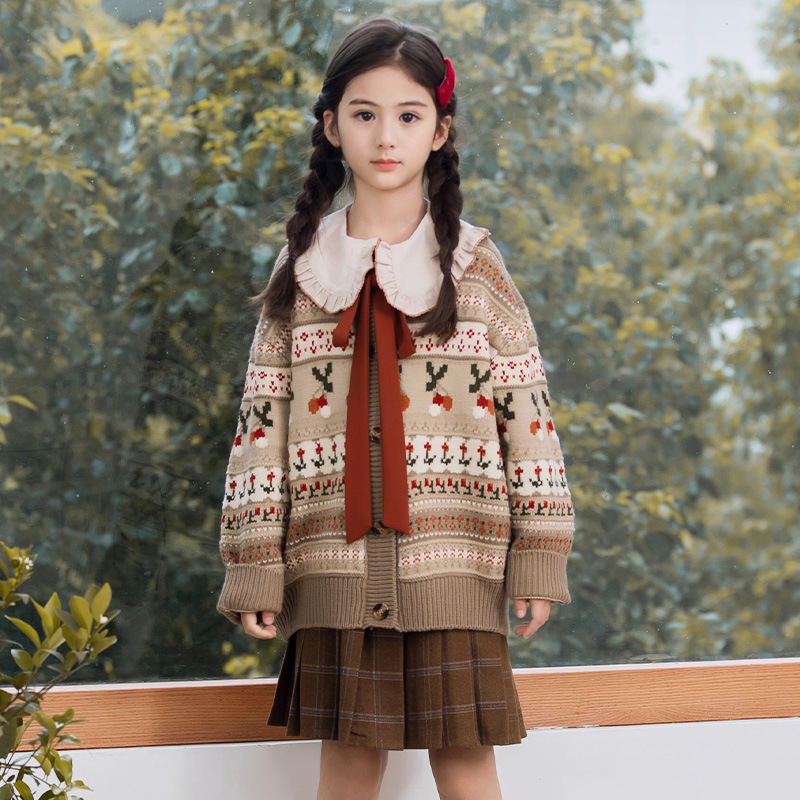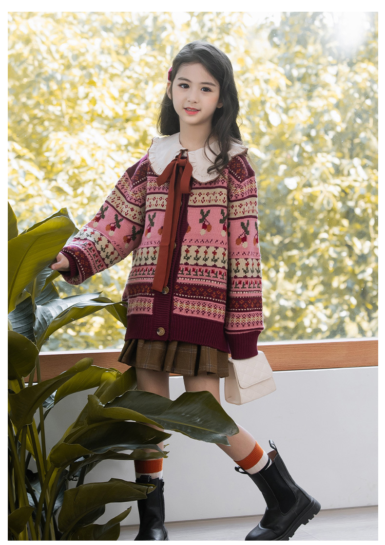 자카드 체리 여아 가디건 스웨터 가을 겨울 2025 신상 니트 코트 아동 스웨터 여아 스웨터스토어 가기