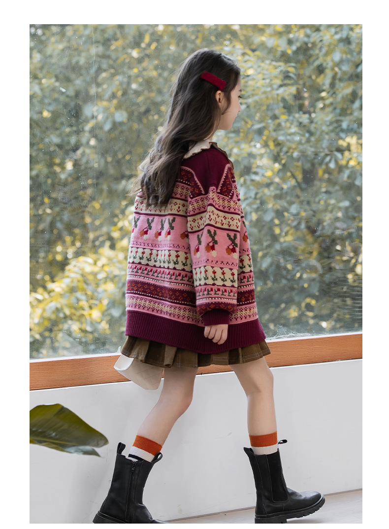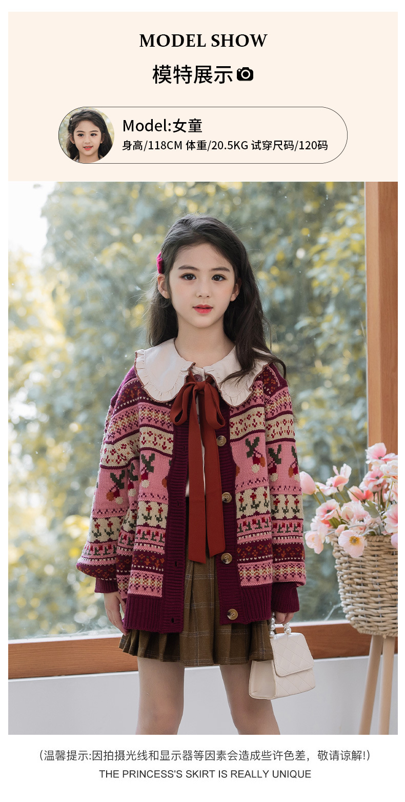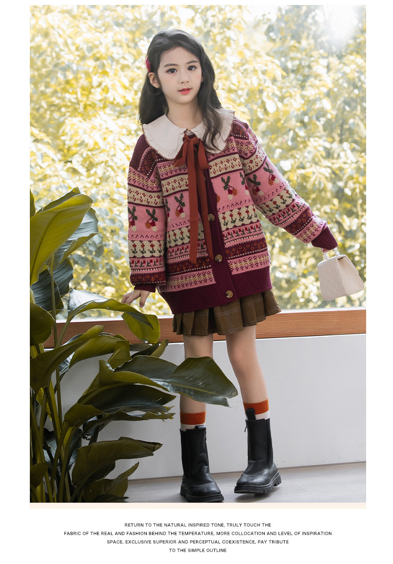 자카드 체리 여아 가디건 스웨터 가을 겨울 2025 신상 니트 코트 아동 스웨터 여아 스웨터스토어 가기