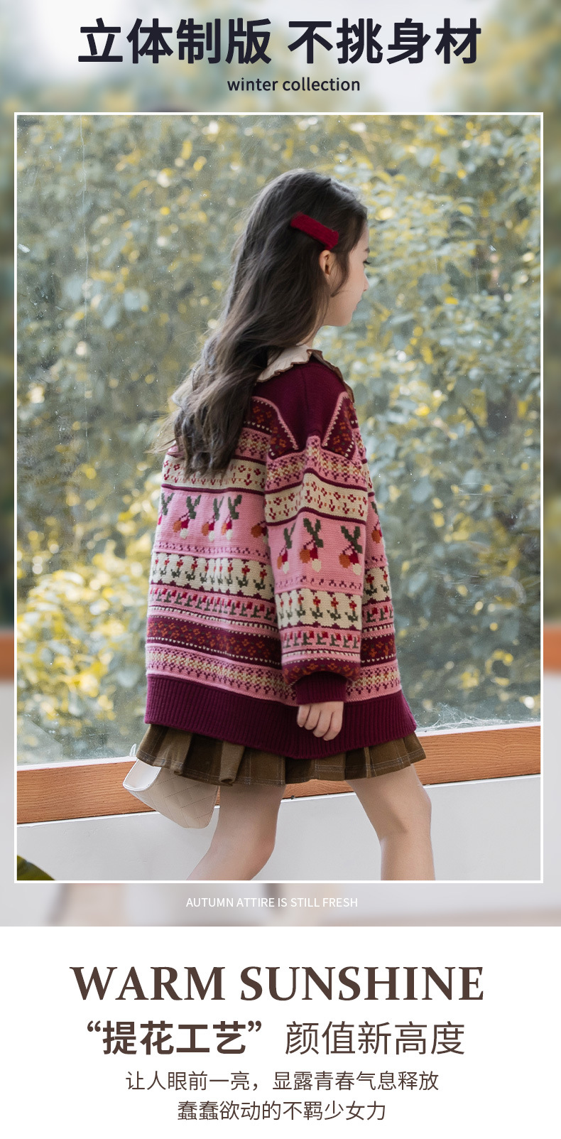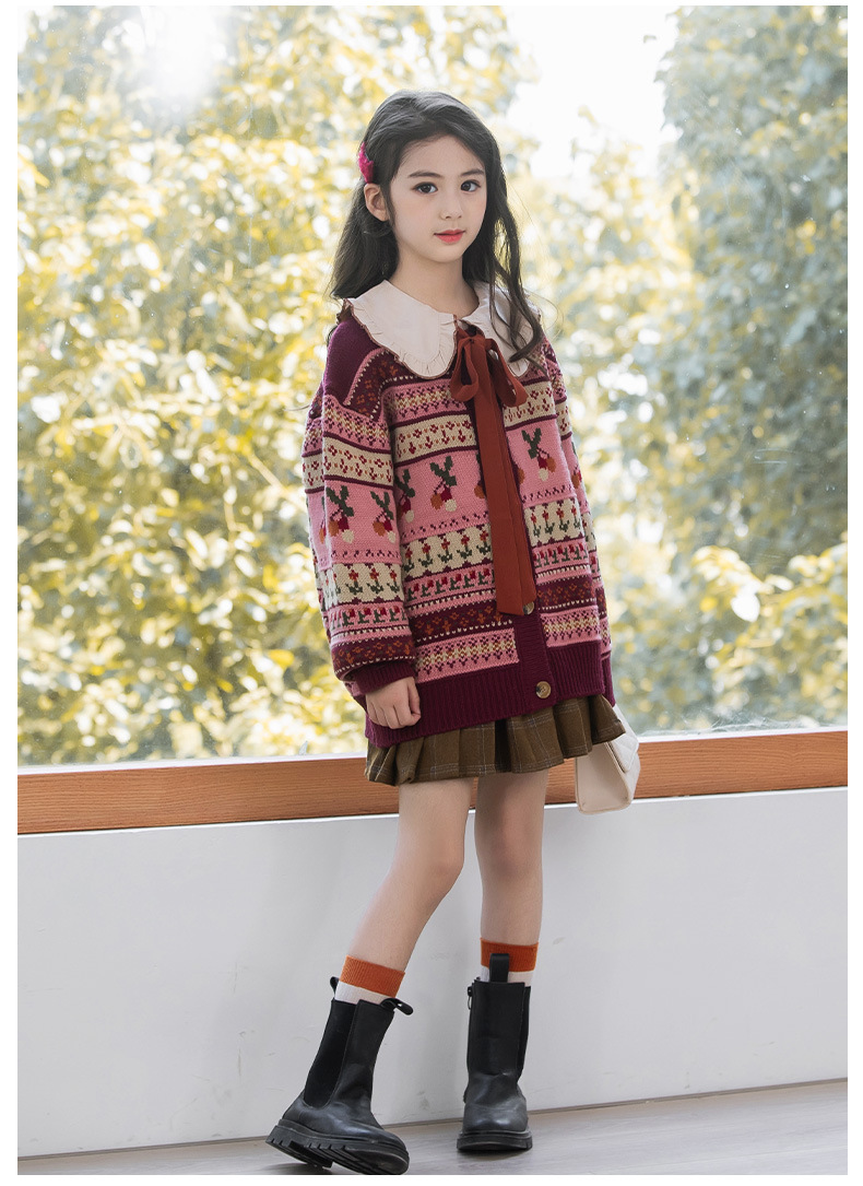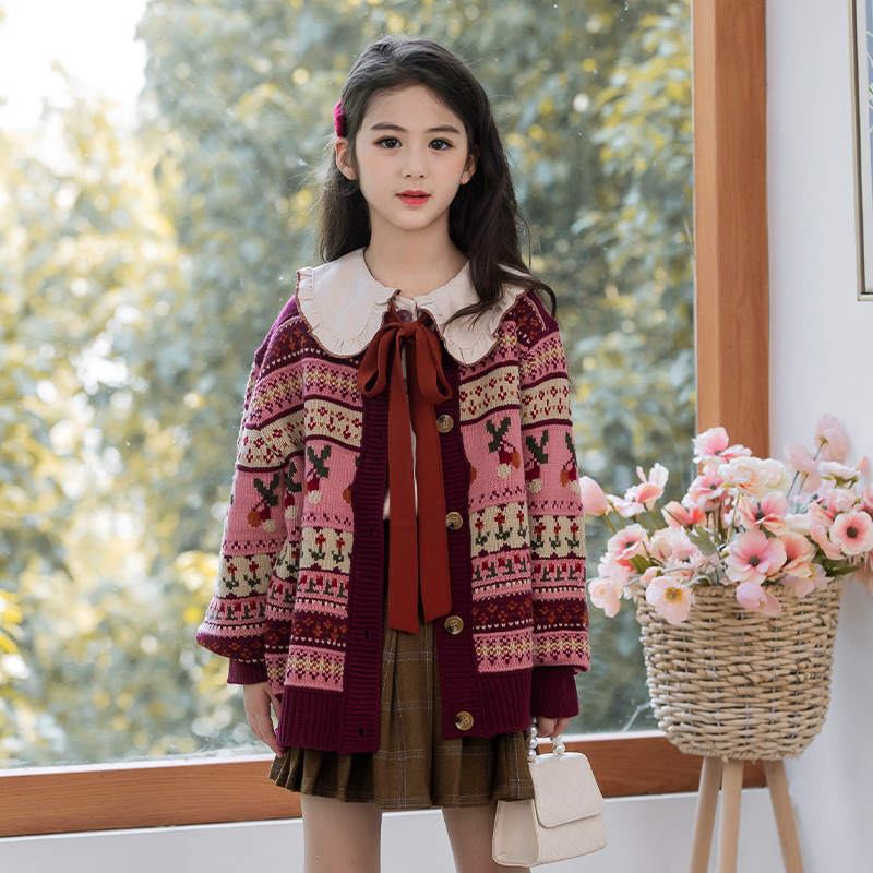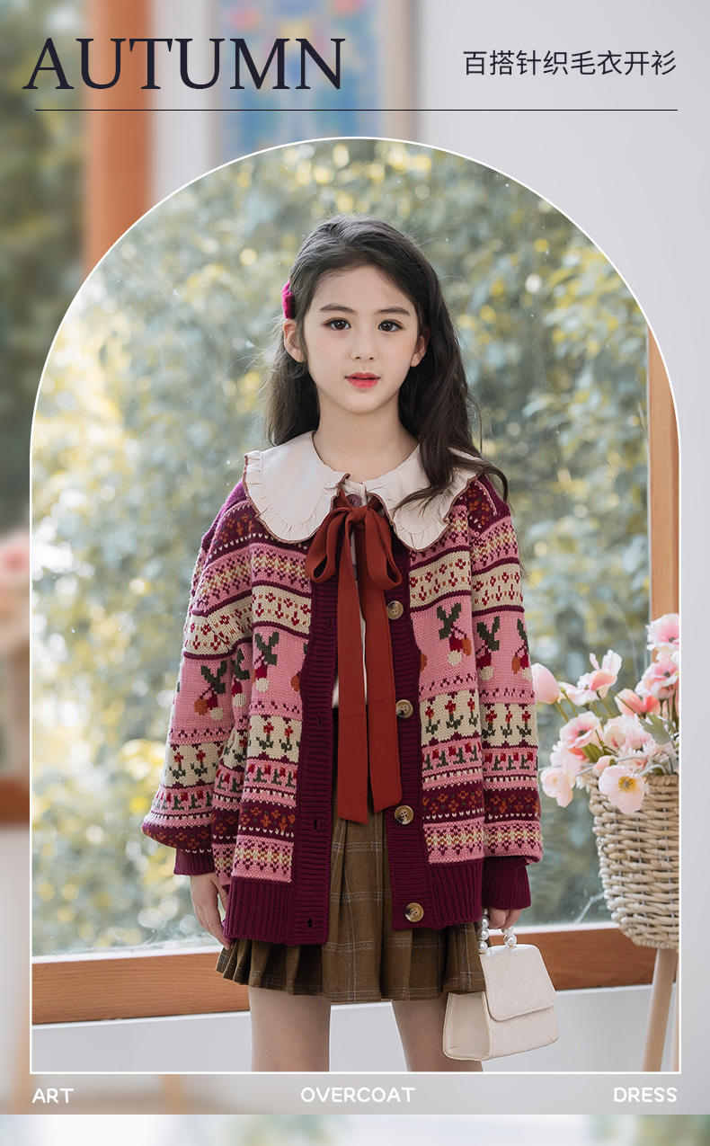 자카드 체리 여아 가디건 스웨터 가을 겨울 2025 신상 니트 코트 아동 스웨터 여아 스웨터
