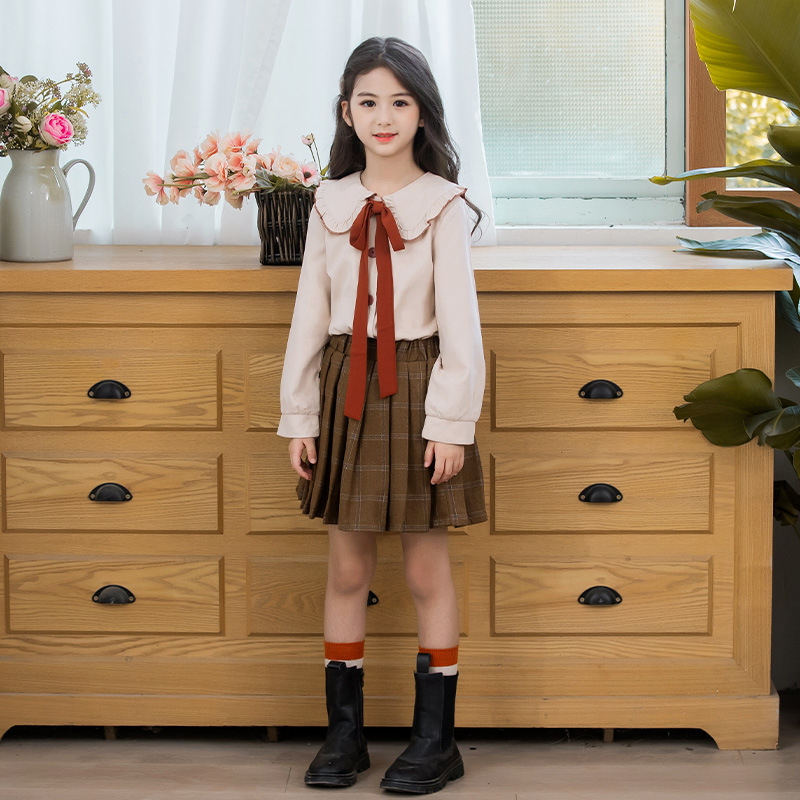 女童衬衫套装裙2024春秋装儿童打底白衬衫JK制服百褶短裙两件套