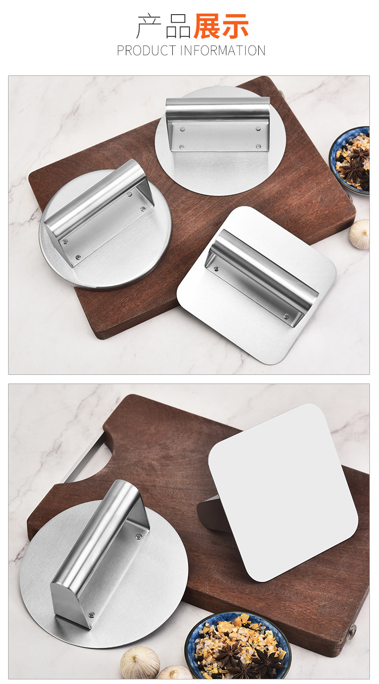 공장 직접 공급 430 스테인레스 스틸 햄버거 수동 고기 프레스 핸드 프레스 케이크 프레스 주방 요리 금속 도구