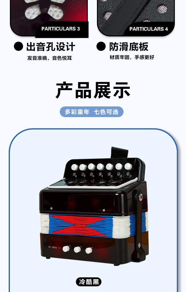 공장 도매 7키 2베이스 아코디언 블랙 모델 학생 어린이 초보자 악기 생일 선물 휴대용 피아노