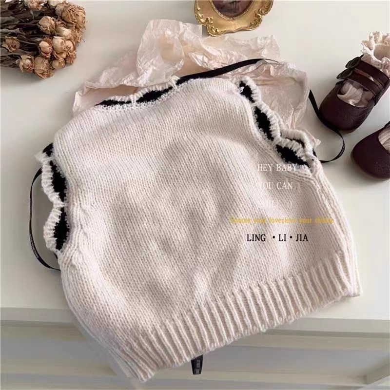 한국 스타일 여아 니트 조끼 2023 가을 새로운 스타일 중소 어린이 서양 스타일 아기 소녀의 니트 모든 매치 작은 조끼 유행스토어 가기