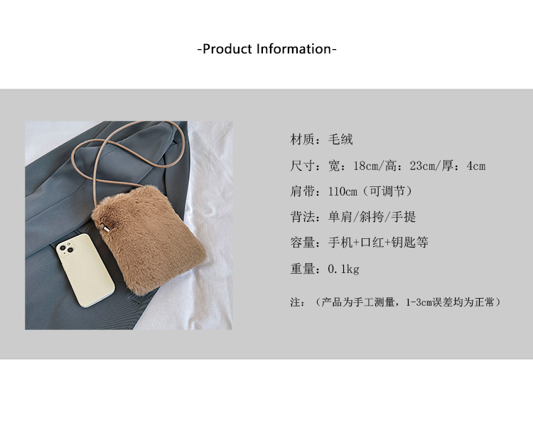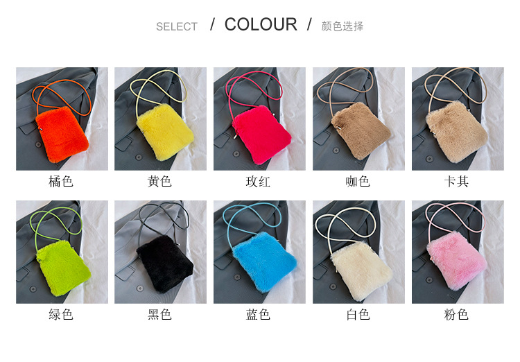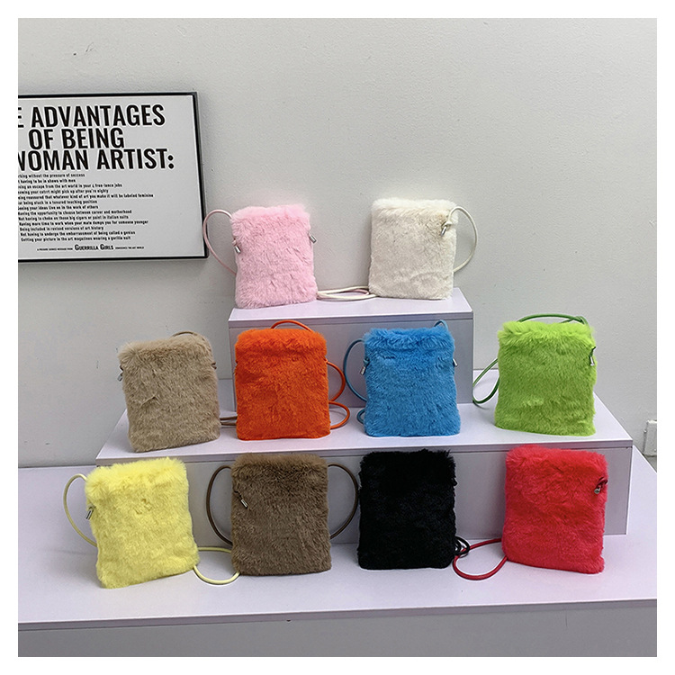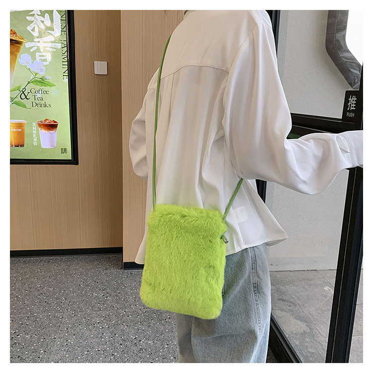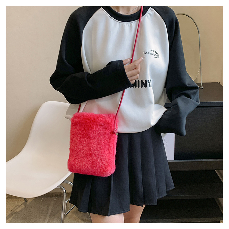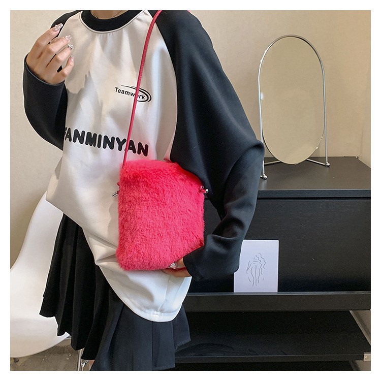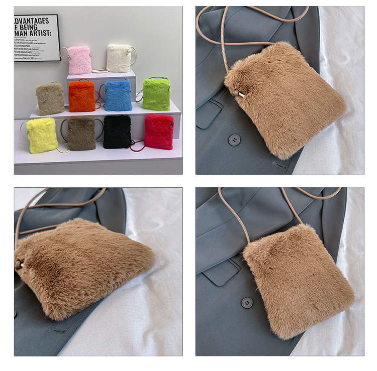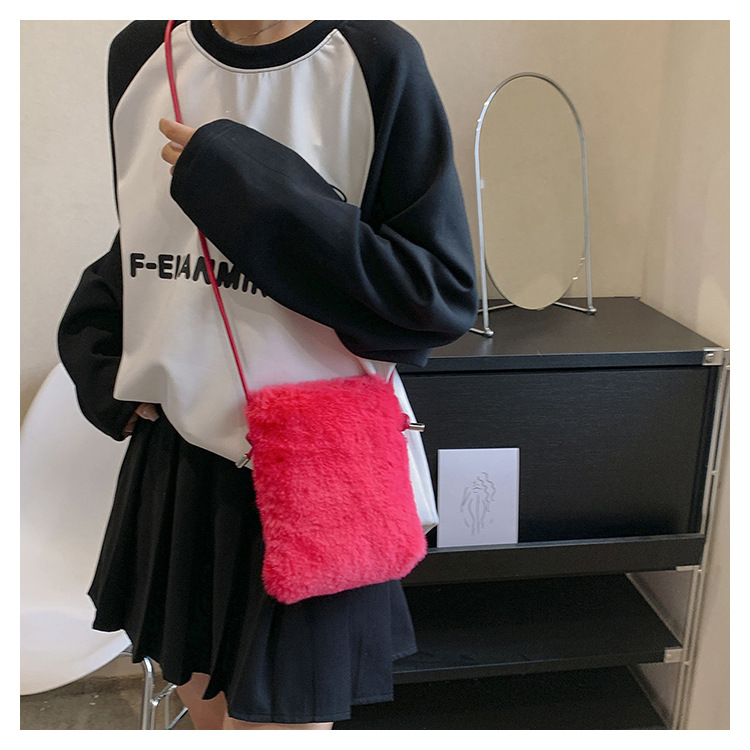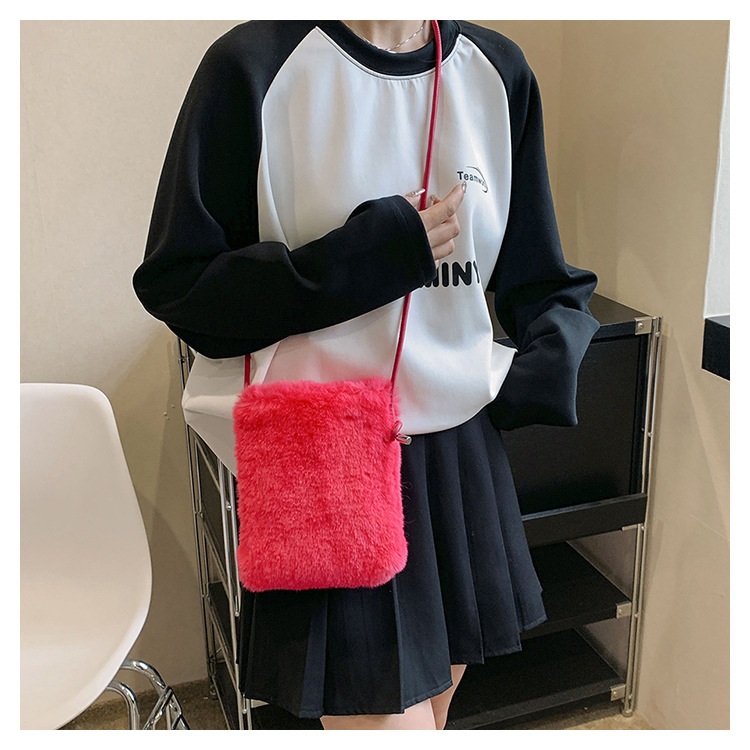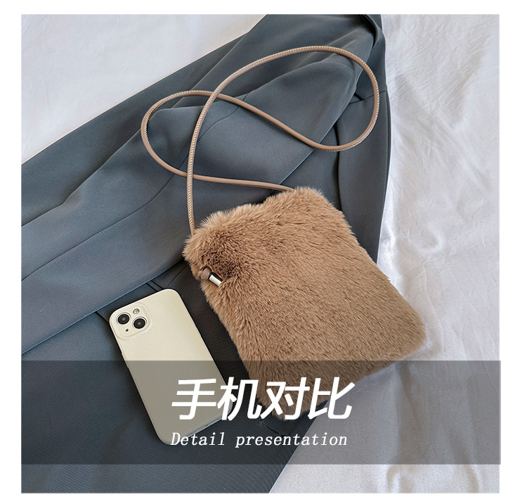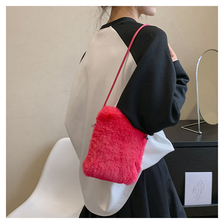 가을 겨울 여성용 플러시 백 2023 겨울 신형 휴대용 여성용 휴대폰 가방 개성 콤팩트 올 매치 마오 마오 메신저 백스토어 가기