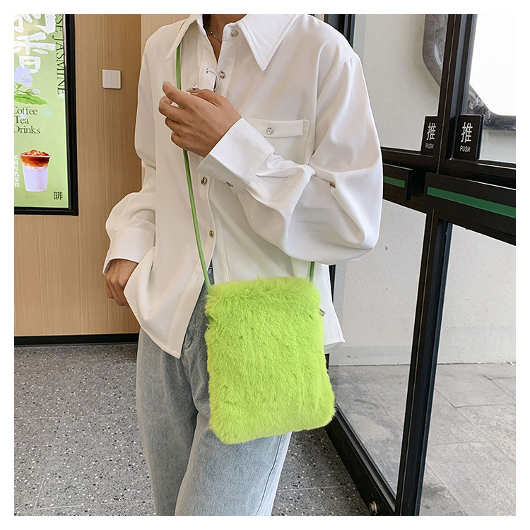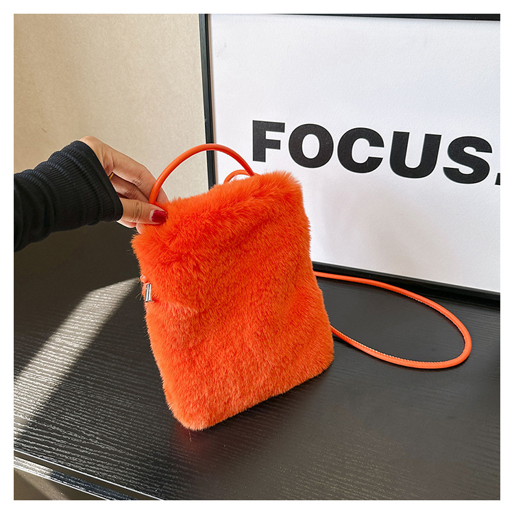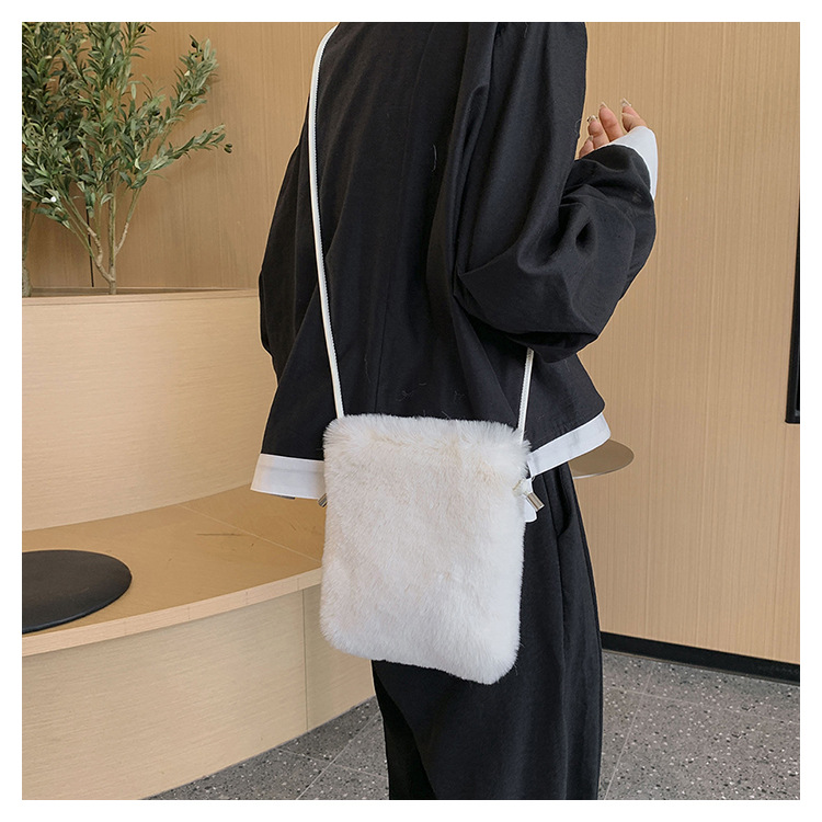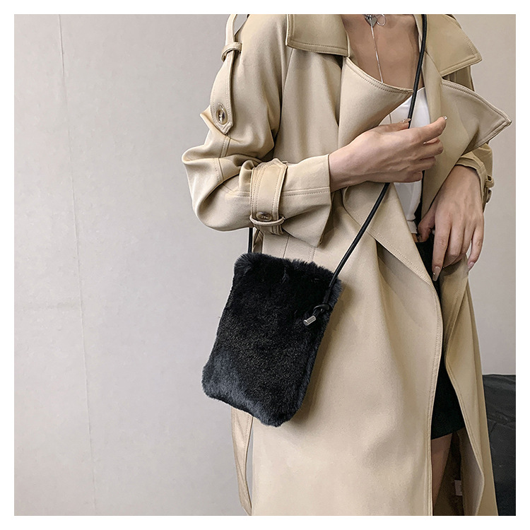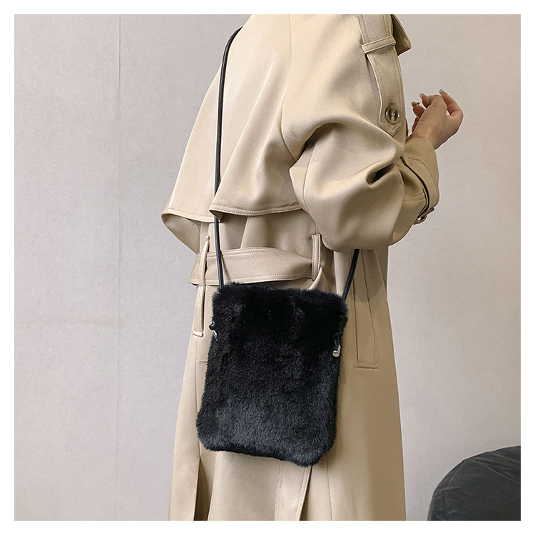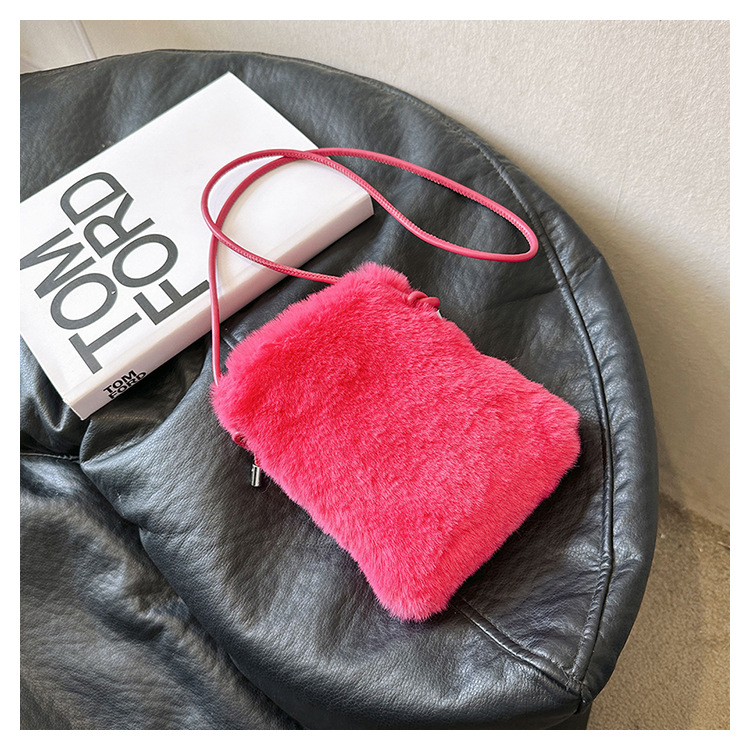 가을 겨울 여성용 플러시 백 2023 겨울 신형 휴대용 여성용 휴대폰 가방 개성 콤팩트 올 매치 마오 마오 메신저 백