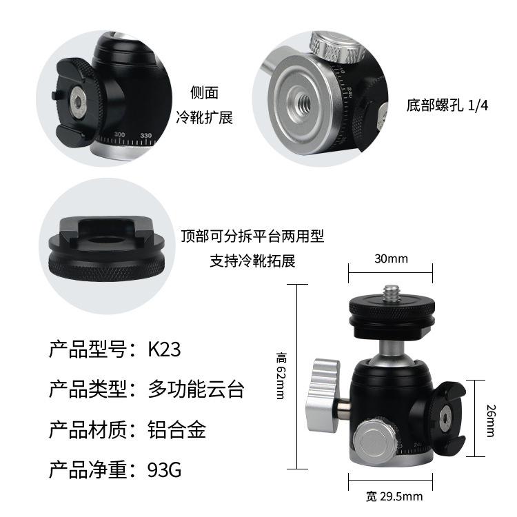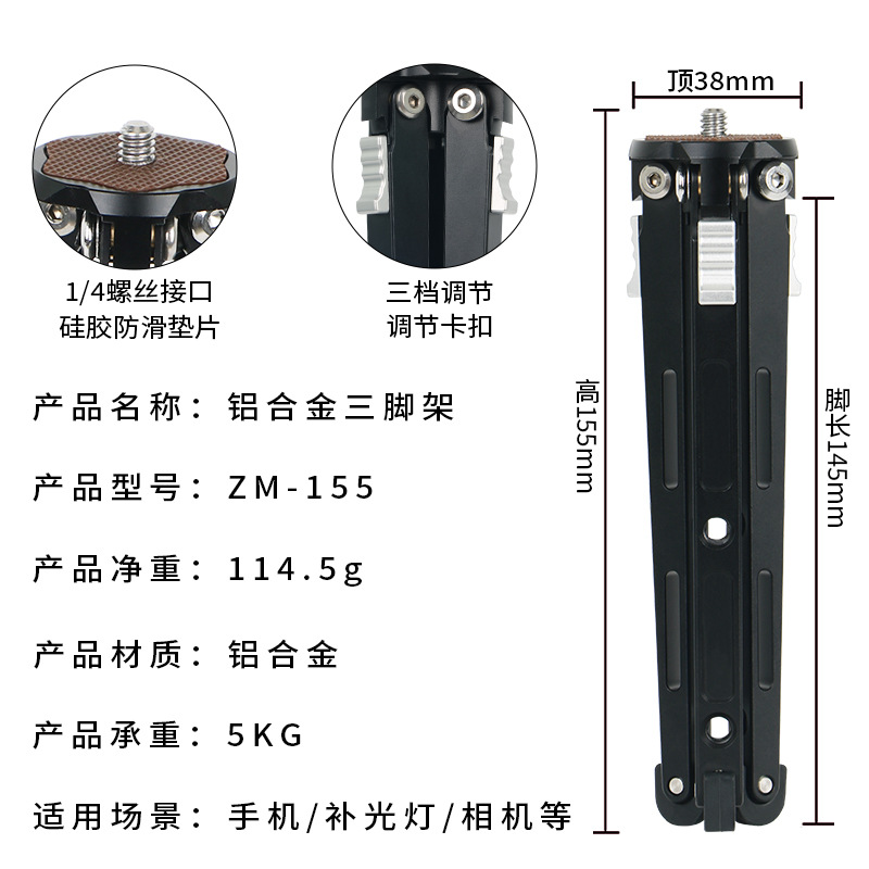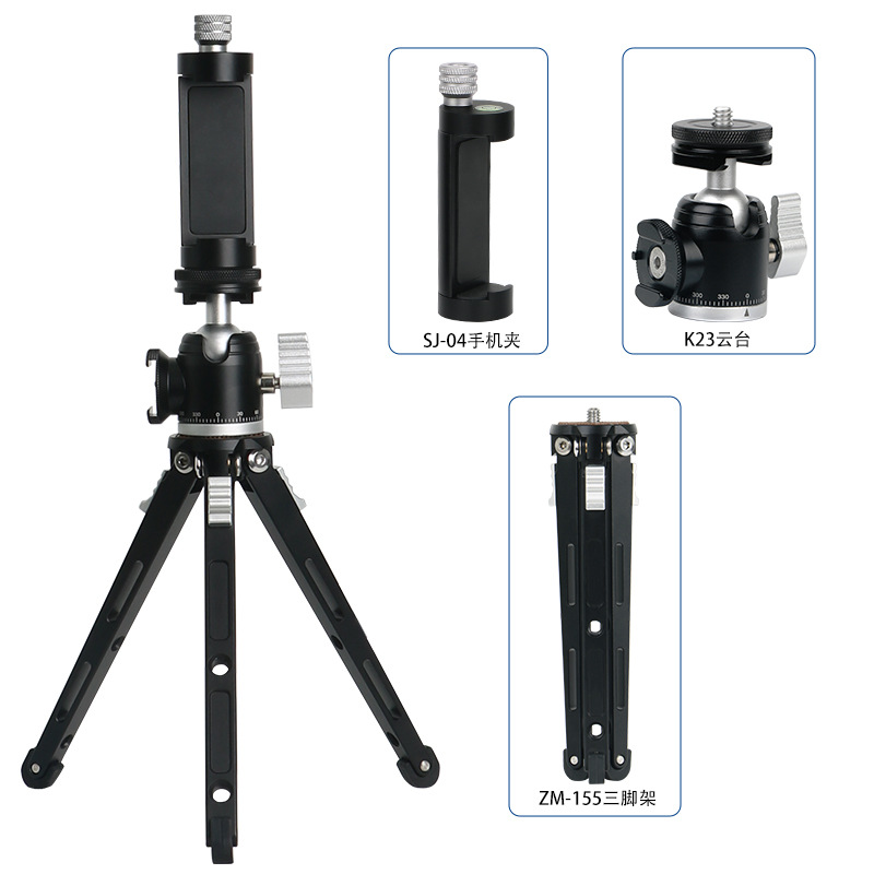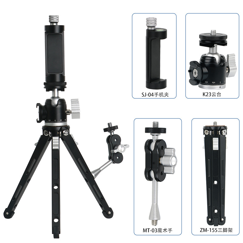 • 3 세트: ZM-155 삼각대 + K23 삼각대 헤드 + SJ-04 휴대폰 클립 + MT-03 매직 핸드