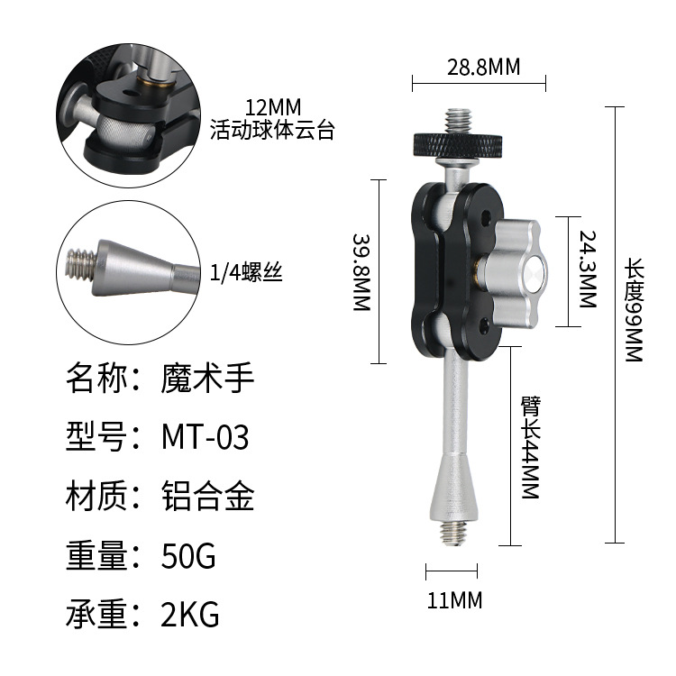 PTZ 휴대 전화 클램프 매직 핸드 브래킷에 적합한 알루미늄 합금 데스크탑 삼각대 3 단 조정 멀티 위치 확장 구멍