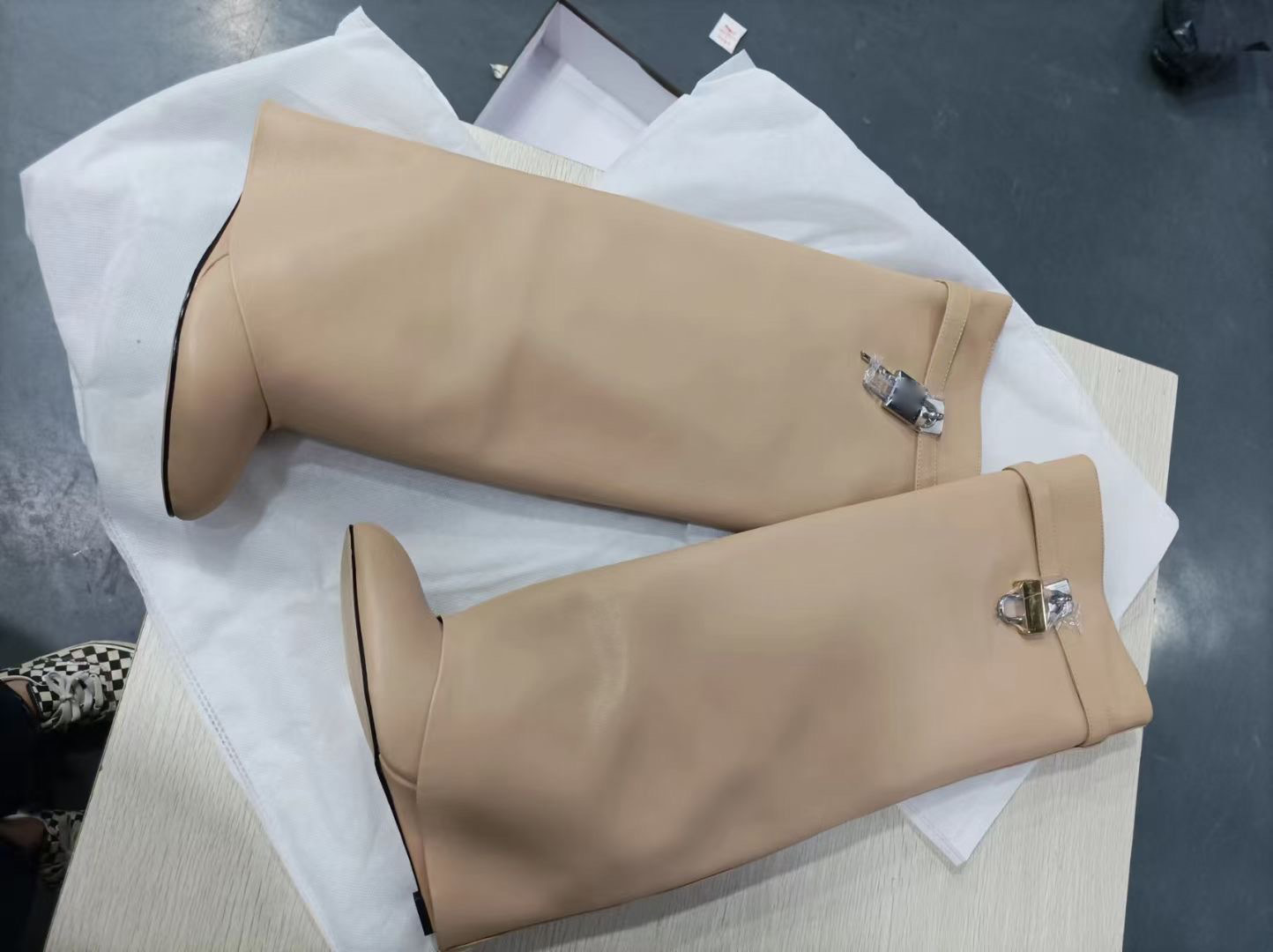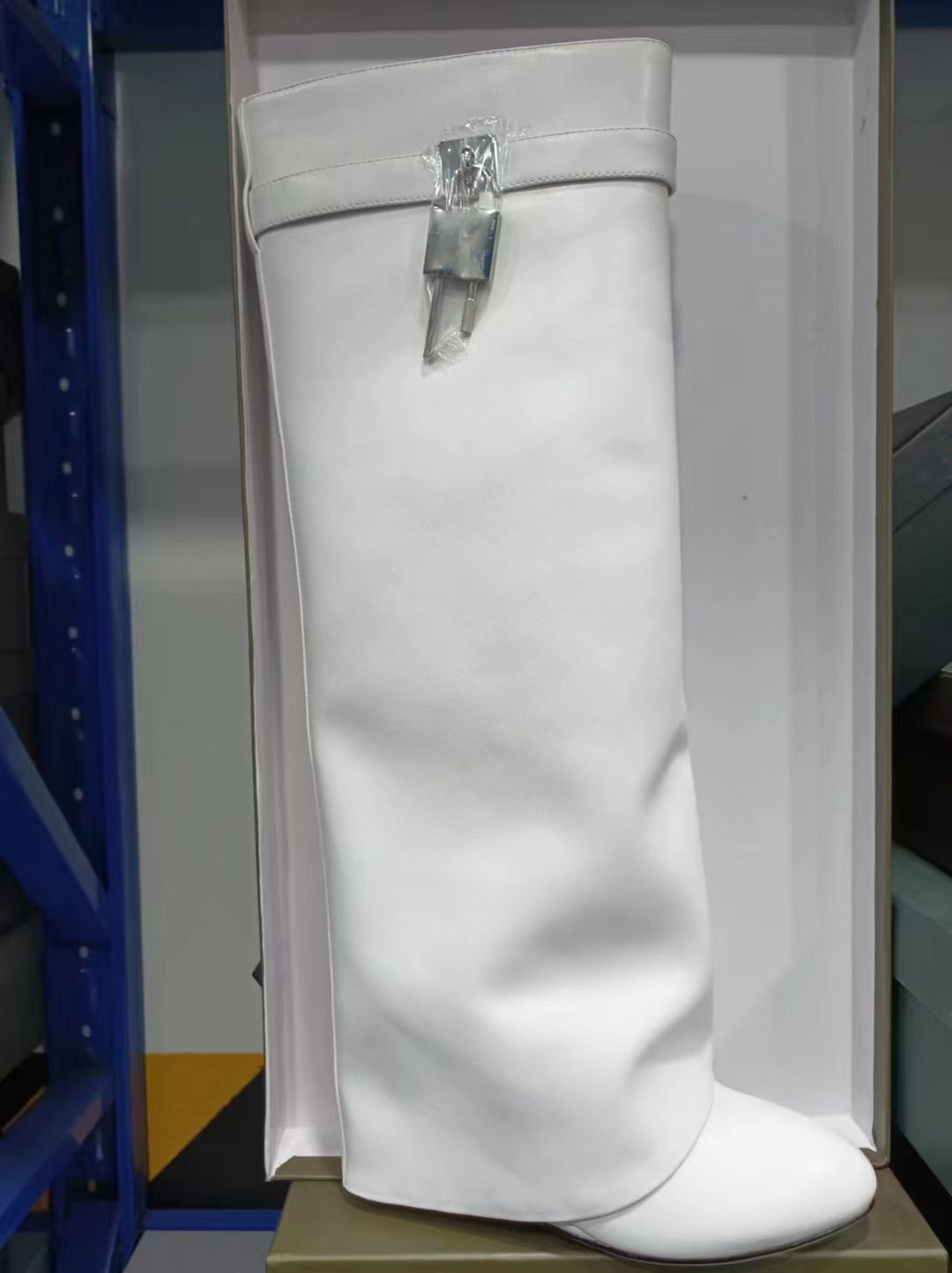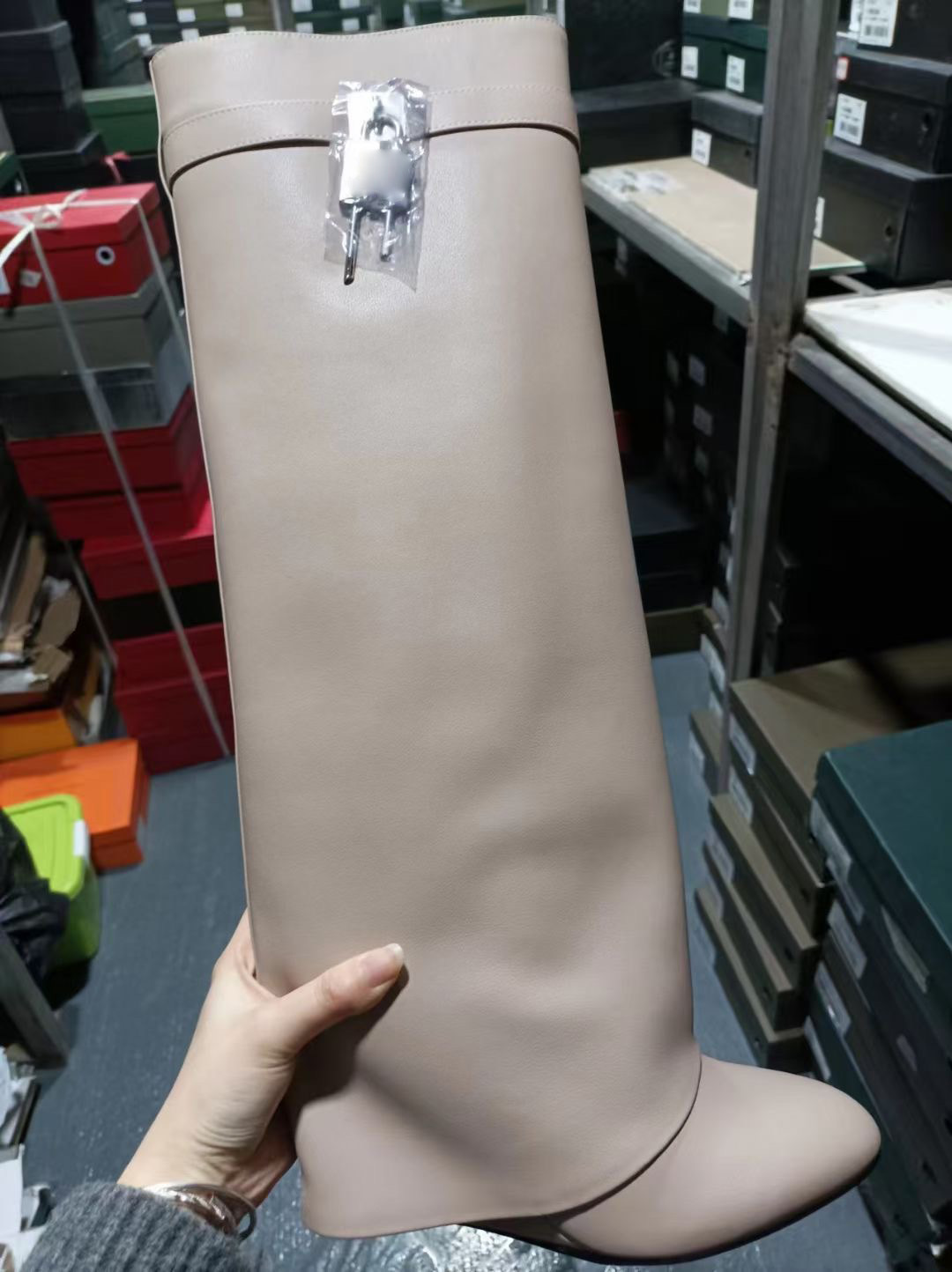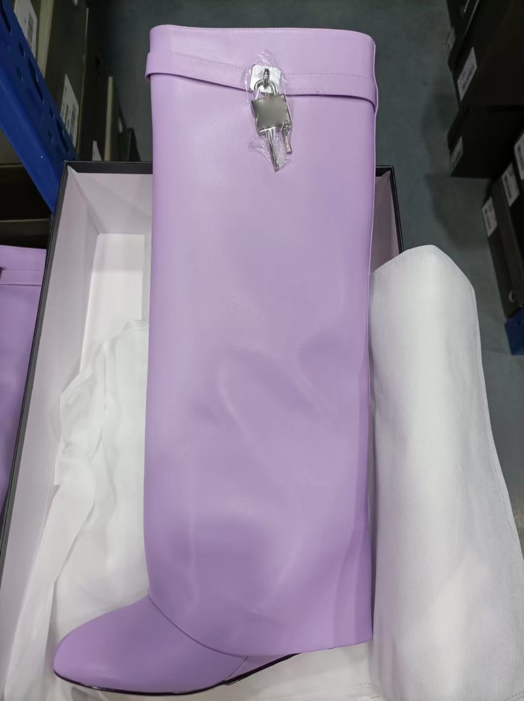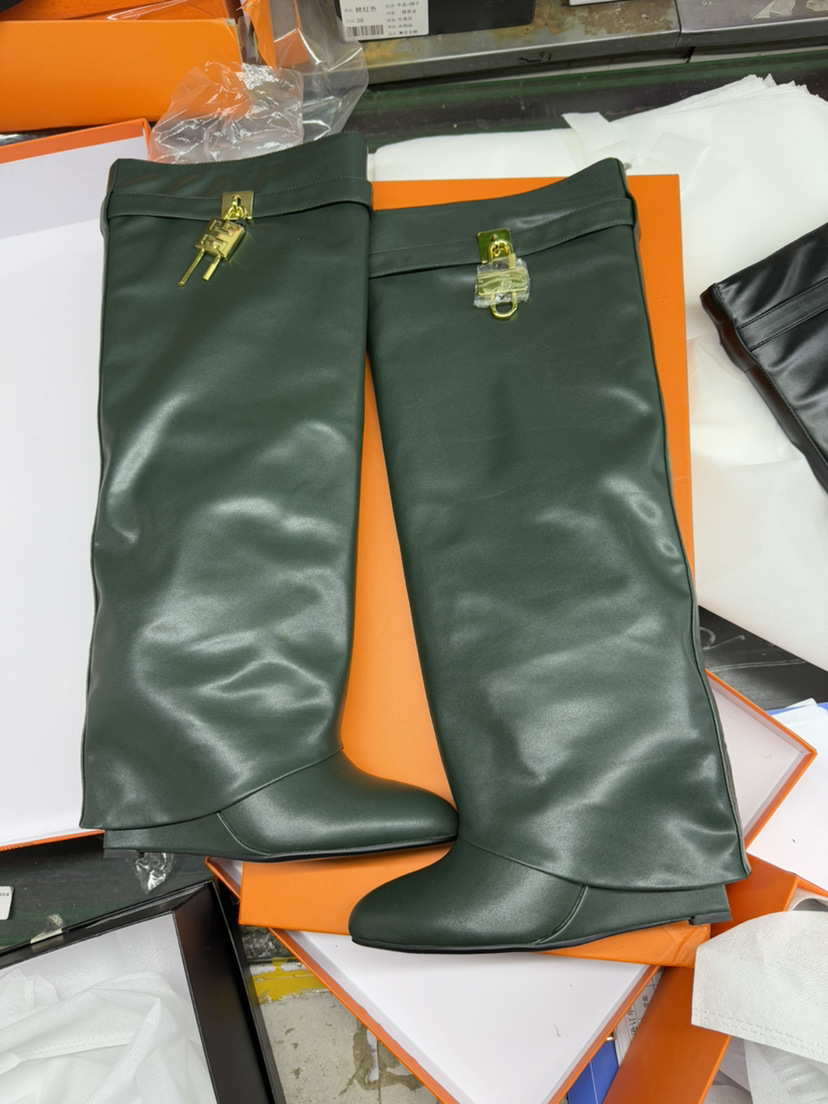 2023 유럽과 미국 대외 무역 크로스 보더 라운드 헤드 빅 튜브 스트레이트 상어 잠금 롱 튜브 웨지 힐 바지 부츠 무릎 높이 부츠스토어 가기