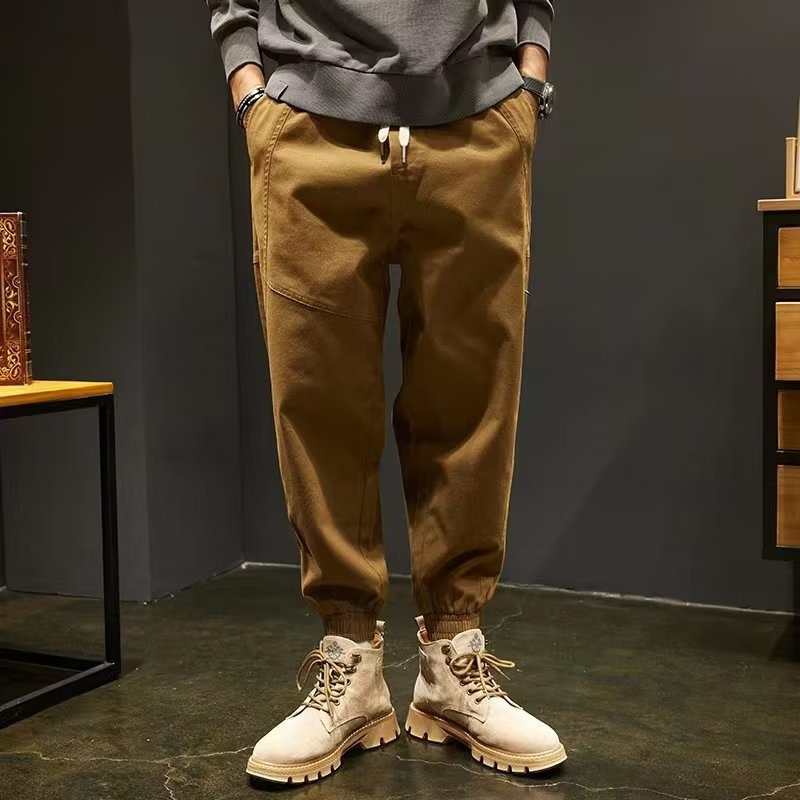 가을 캐주얼 바지 남자의 트렌디 느슨한 플러스 사이즈 발 강아지 잘 생긴 할란 발 묶음 작업 긴 바지 봄과 가을 남자의 모든 매치스토어 가기