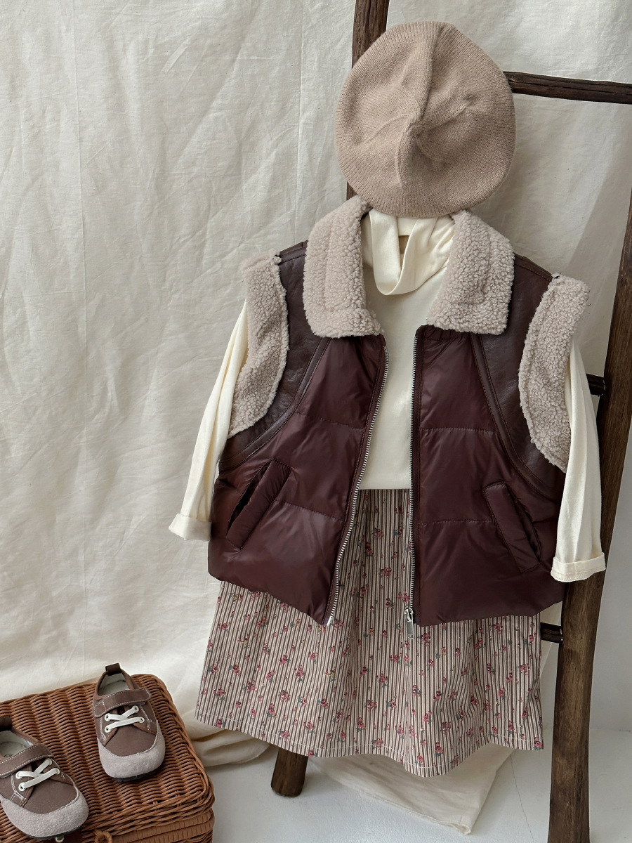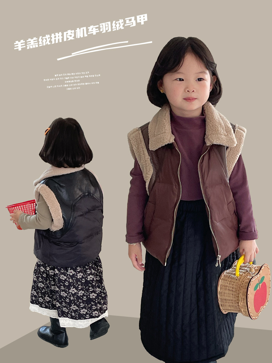 양털과 가죽으로 만든 오토바이 조끼, 아동용 다운 조끼, 패셔너블하고 두꺼운 겨울 드롭 배송스토어 가기