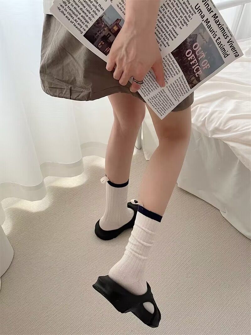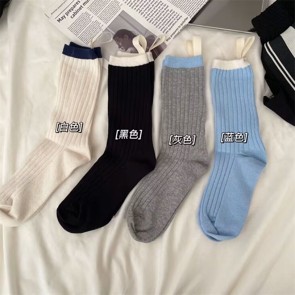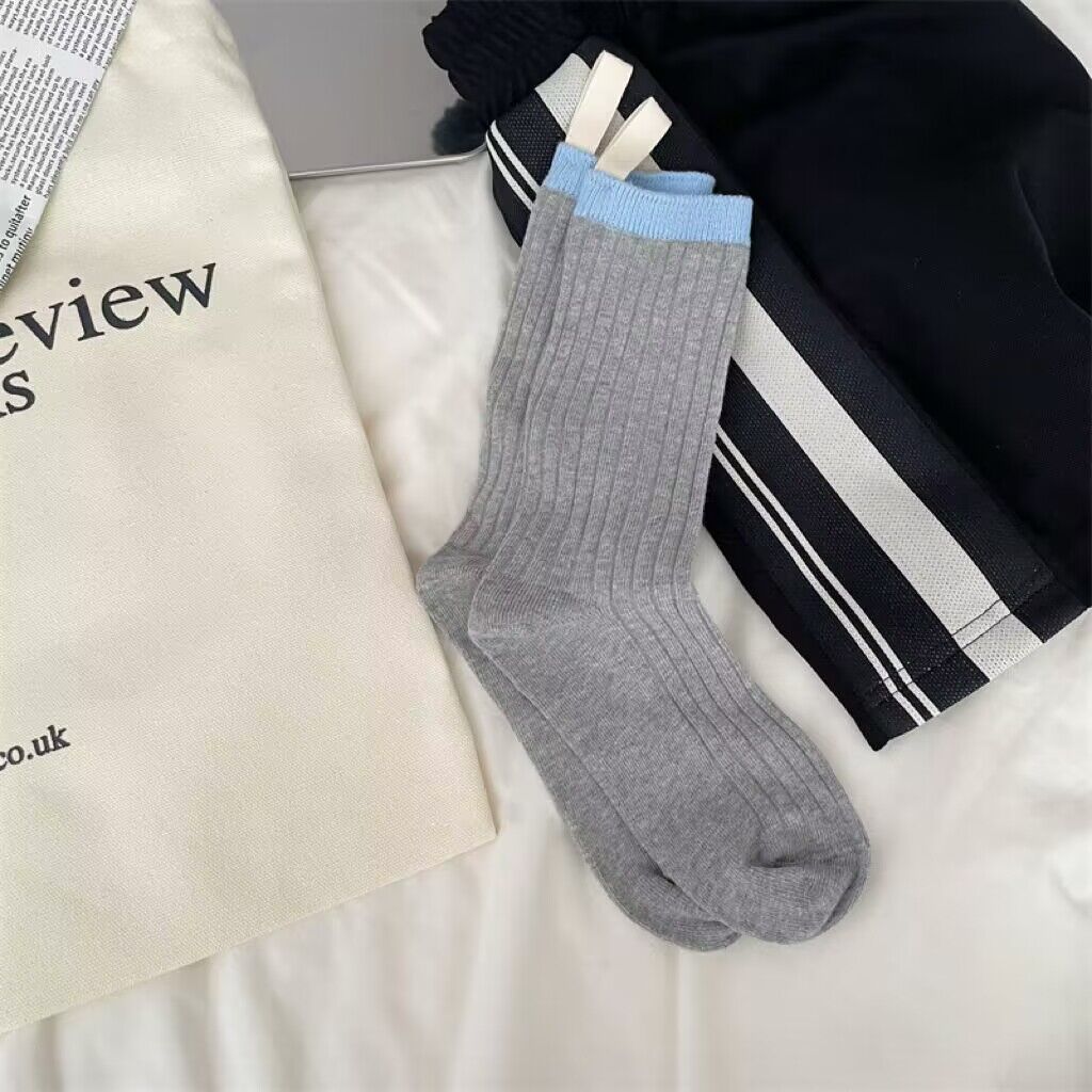 트렌디 한 천 라벨 중간 길이 양말 여성용 스포츠 양말 스택 양말 한국 간단한 양말스토어 가기