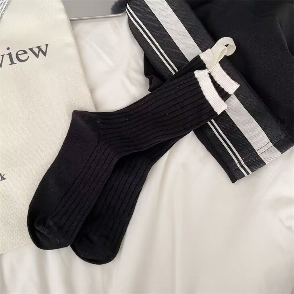 트렌디 한 천 라벨 중간 길이 양말 여성용 스포츠 양말 스택 양말 한국 간단한 양말