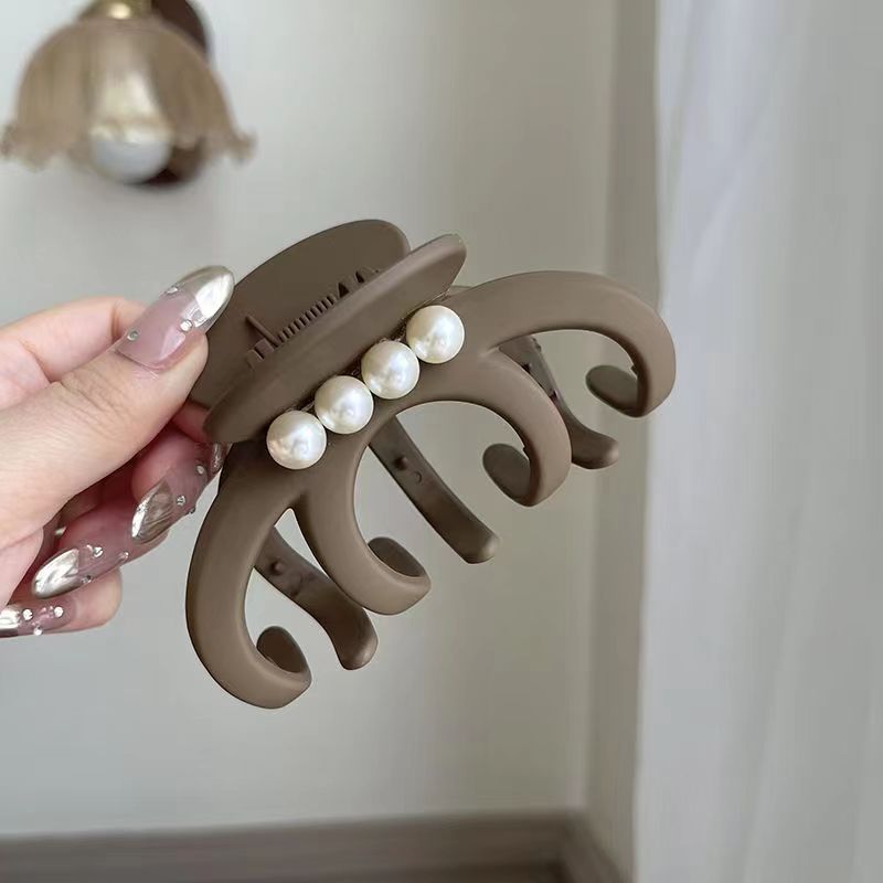 진주 머리핀 여자의 머리 양 상어 클립 기질 큰 호박 클립 머리핀 뒤 머리 디스크 머리 잡아 클립 모자