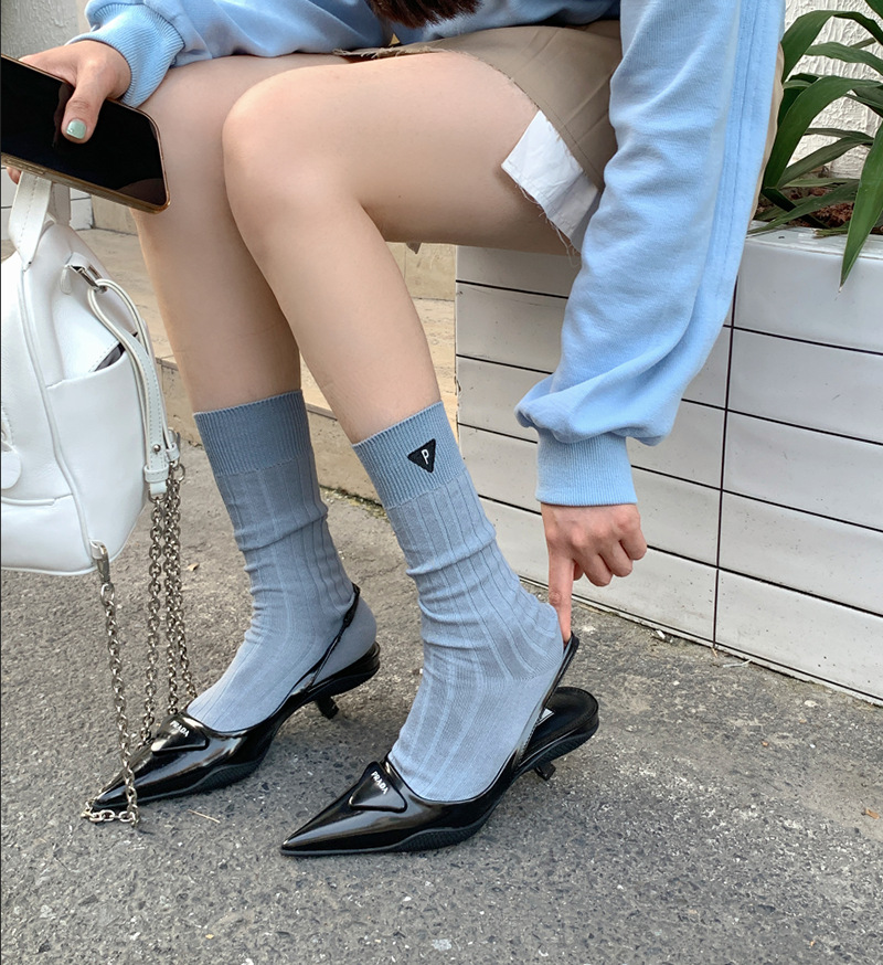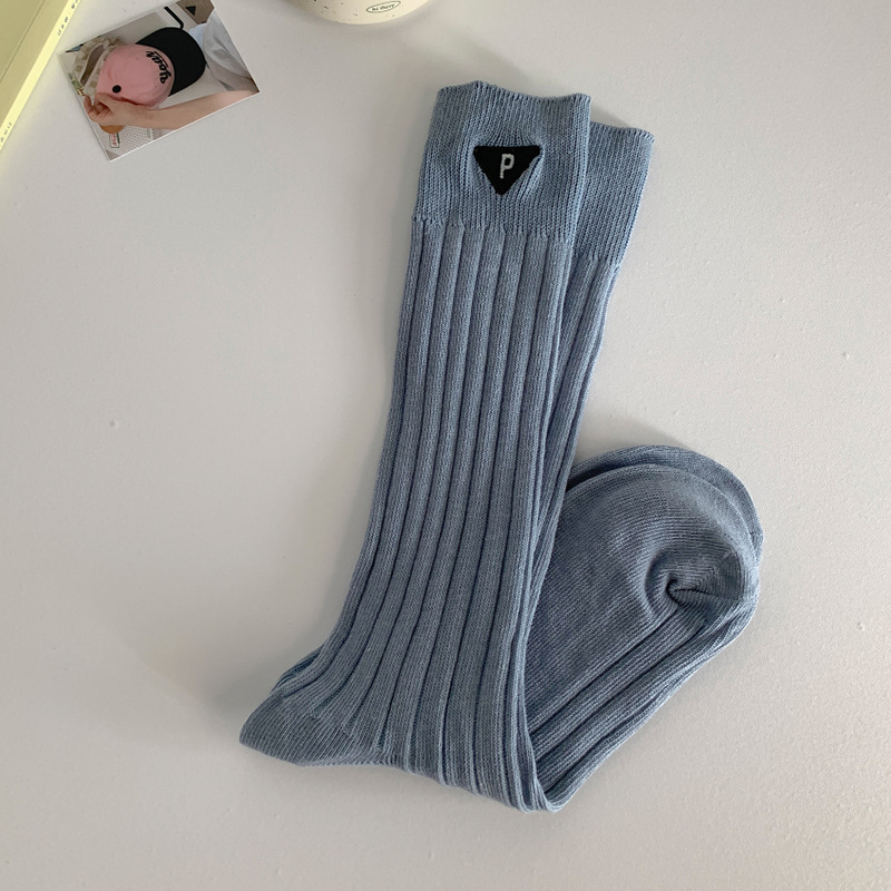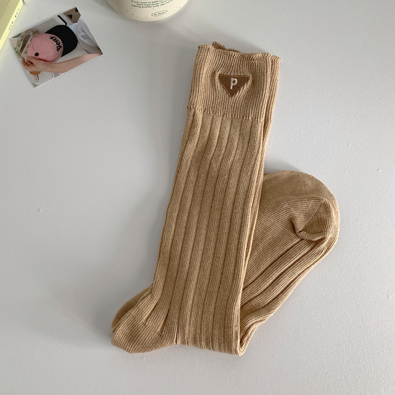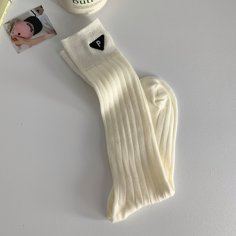 양말 자수 더미 양말에 P 글자 유럽 패션 여성 양말 세로 줄무늬 부드러운 바람 양말 가을과 겨울 새로운