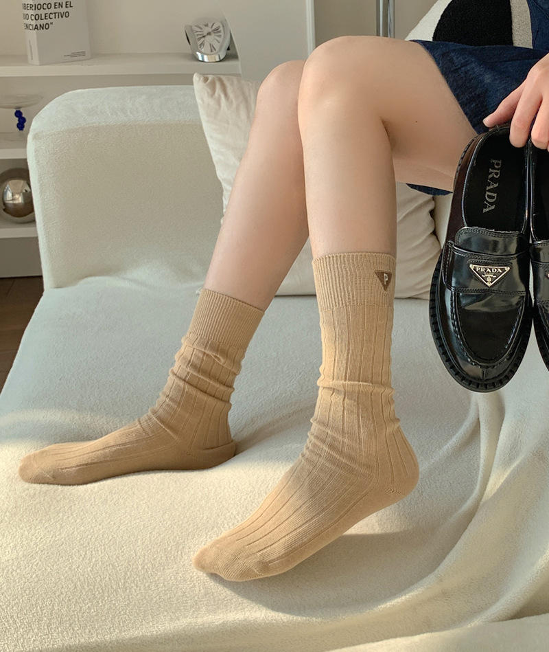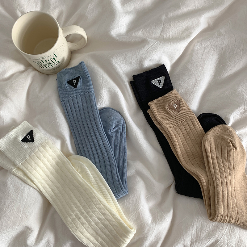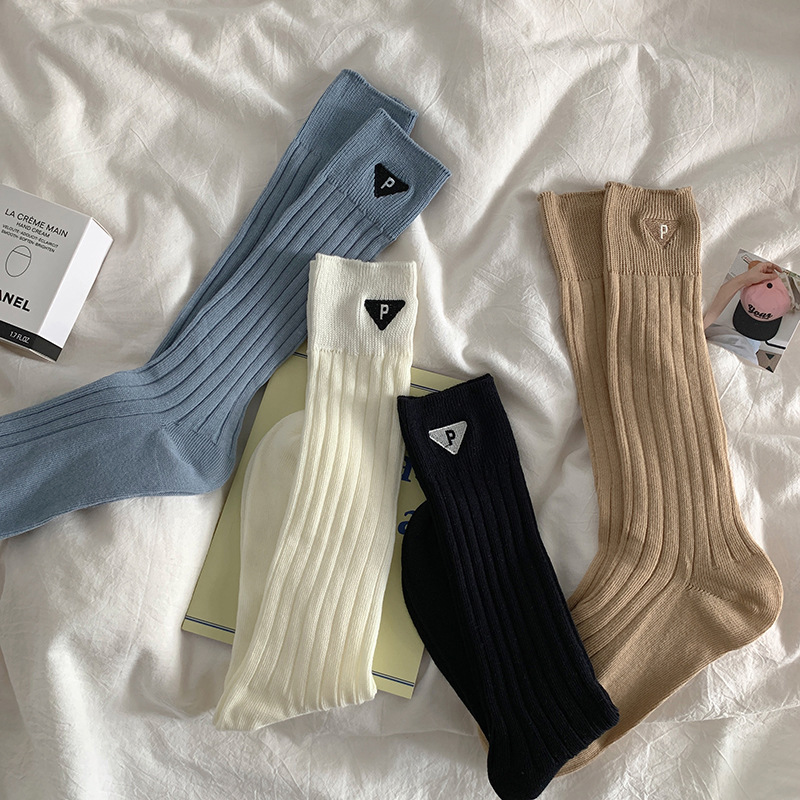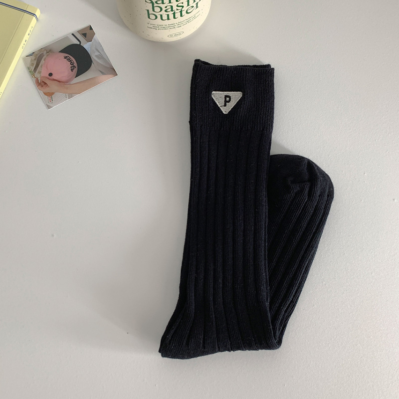 양말 자수 더미 양말에 P 글자 유럽 패션 여성 양말 세로 줄무늬 부드러운 바람 양말 가을과 겨울 새로운스토어 가기