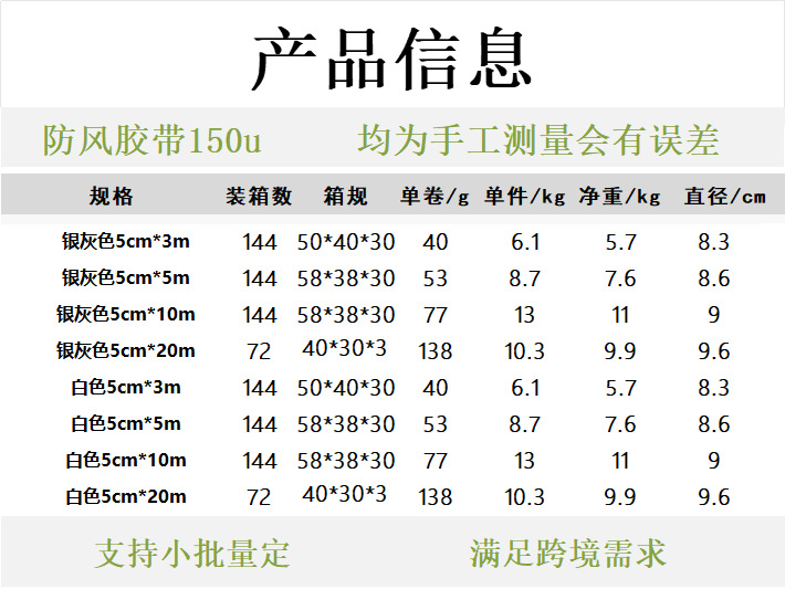 • 실버 회색; 5cm * 3m (144 롤 상자)
