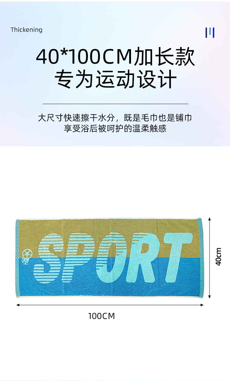 순면 32 가닥 원사 염색 자카드 스포츠 타월 40*100 마라톤 대형 타월 야외 스포츠 선물 땀 흡수 타월