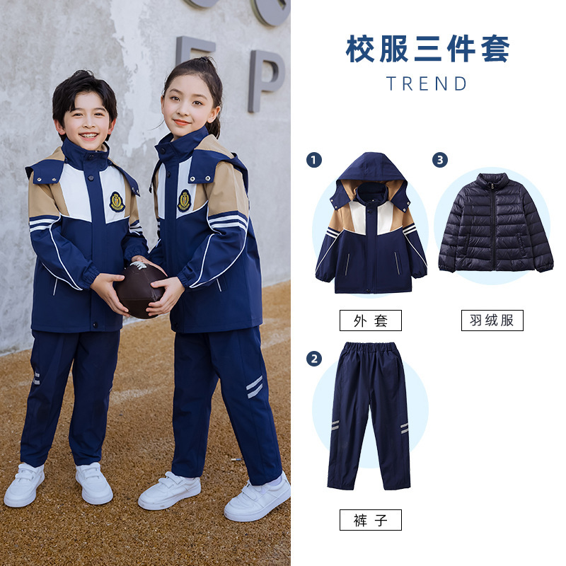 초중고 학생을위한 교복 3 피스 다운 옷 어린이 학급 옷 봄과 가을 세트 유치원 정원 옷 가을과 겨울 옷