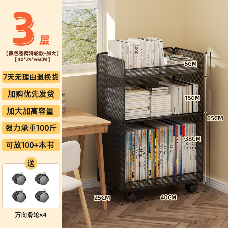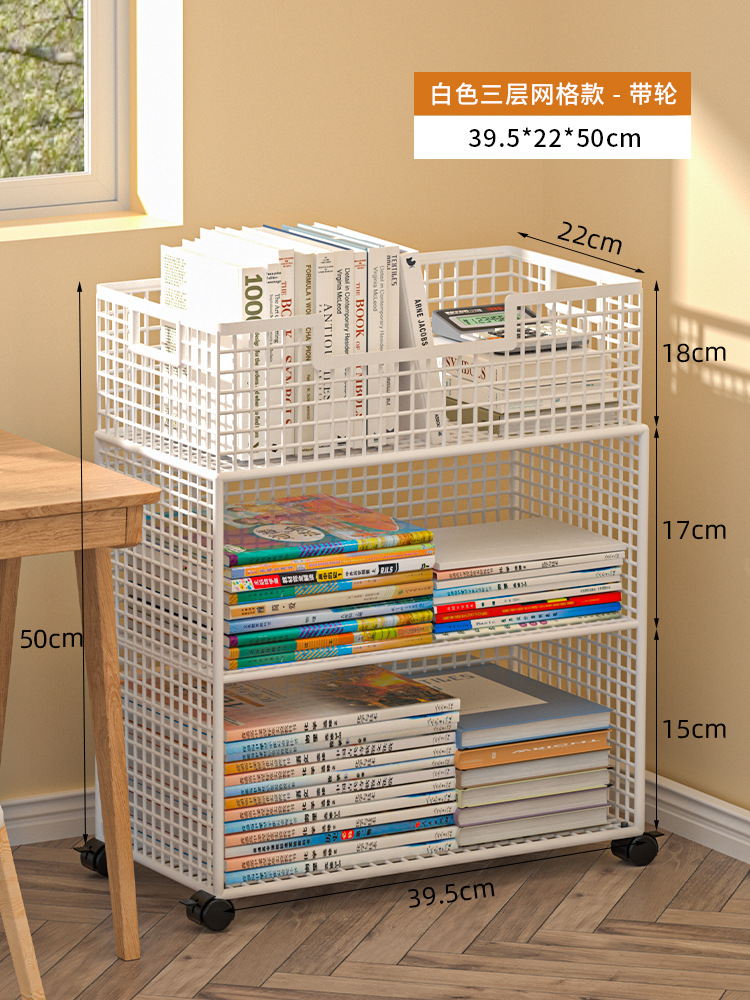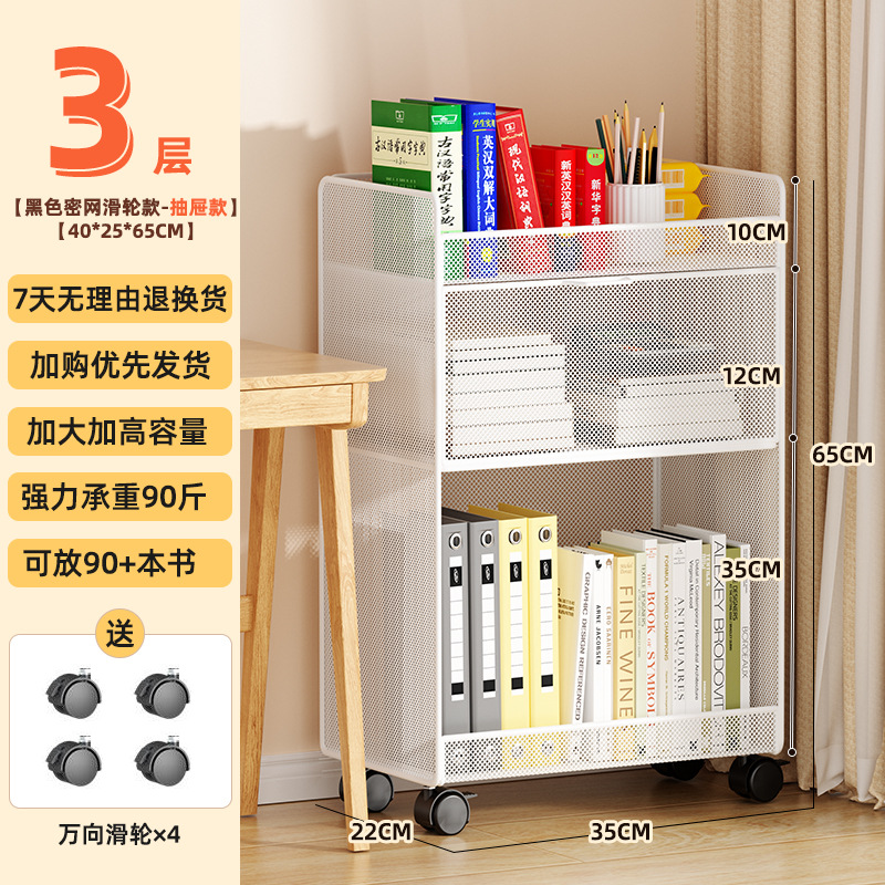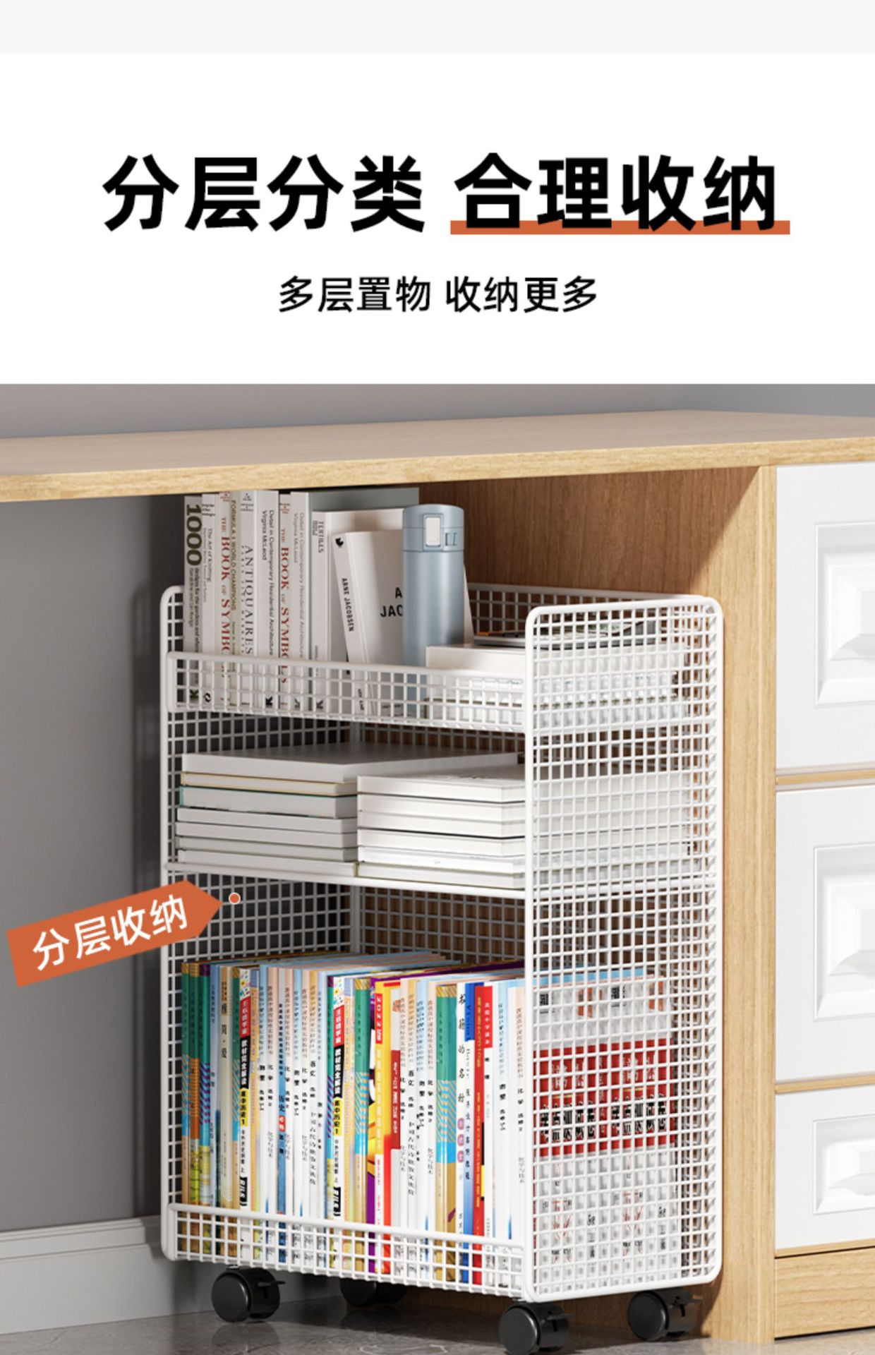 테이블 아래 수납 랙 책상 작은 책장 이동식 바닥-바닥 바퀴 책상 사이드 카트 책 보관 책장