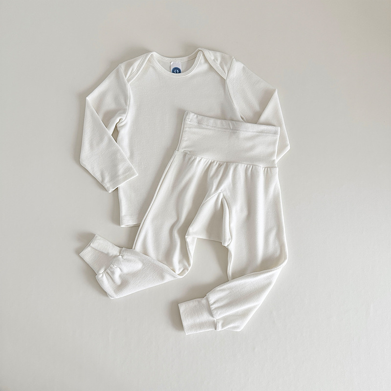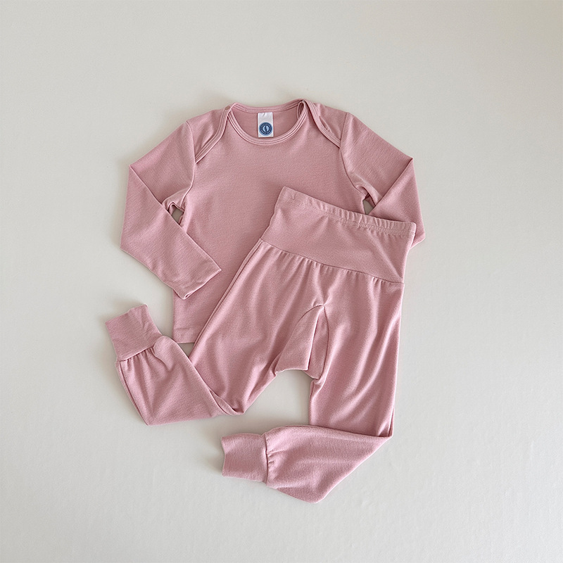 어린이 캐시미어 홈웨어 세트 2024 유럽 및 미국 가을 겨울 스타일 남녀 아기 긴팔 상의 허리끈 바지 잠옷
