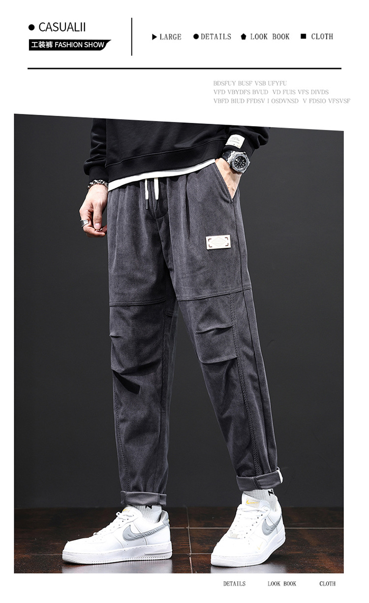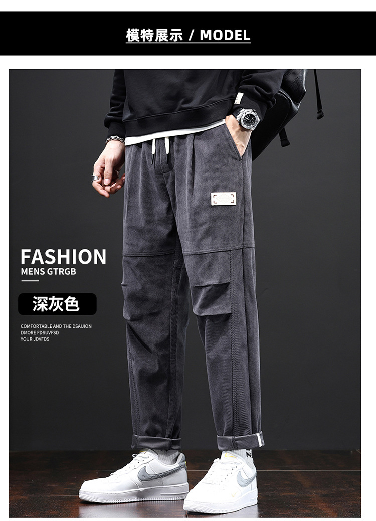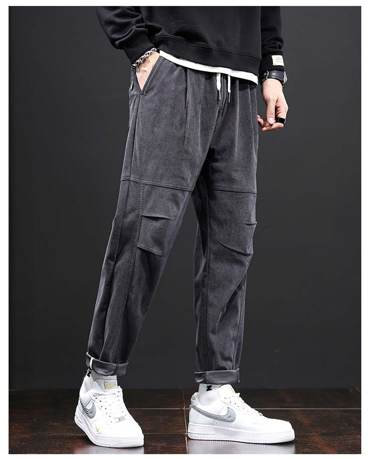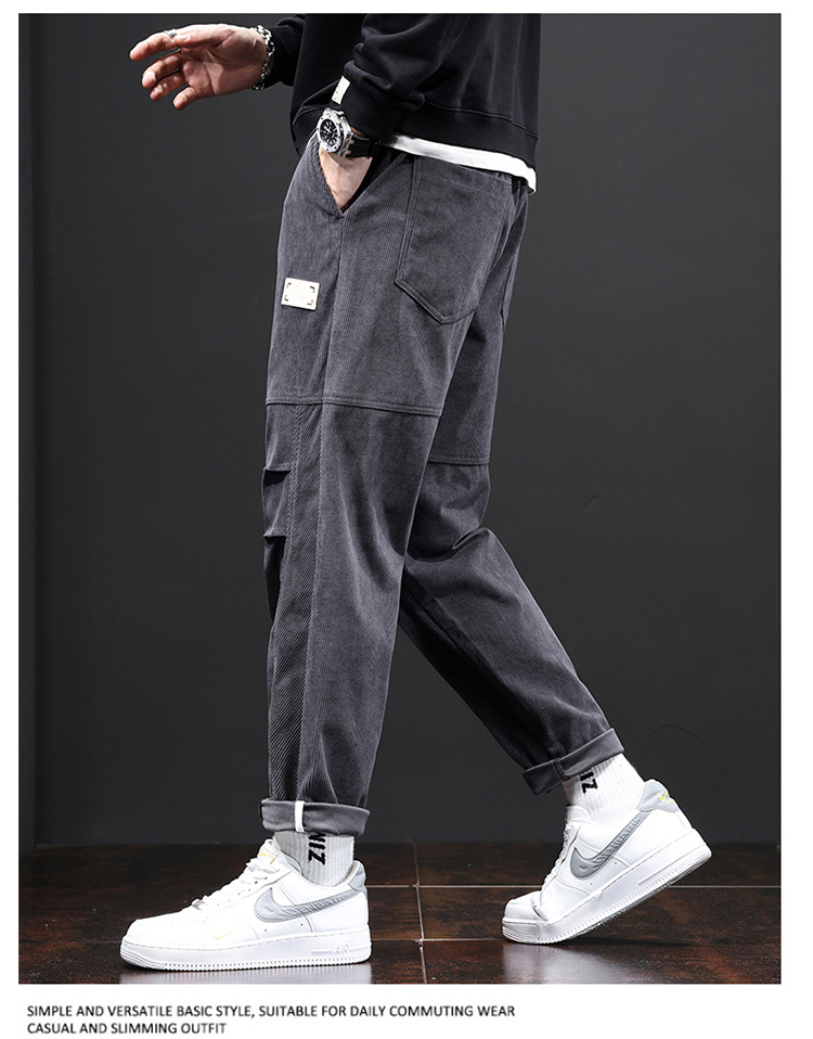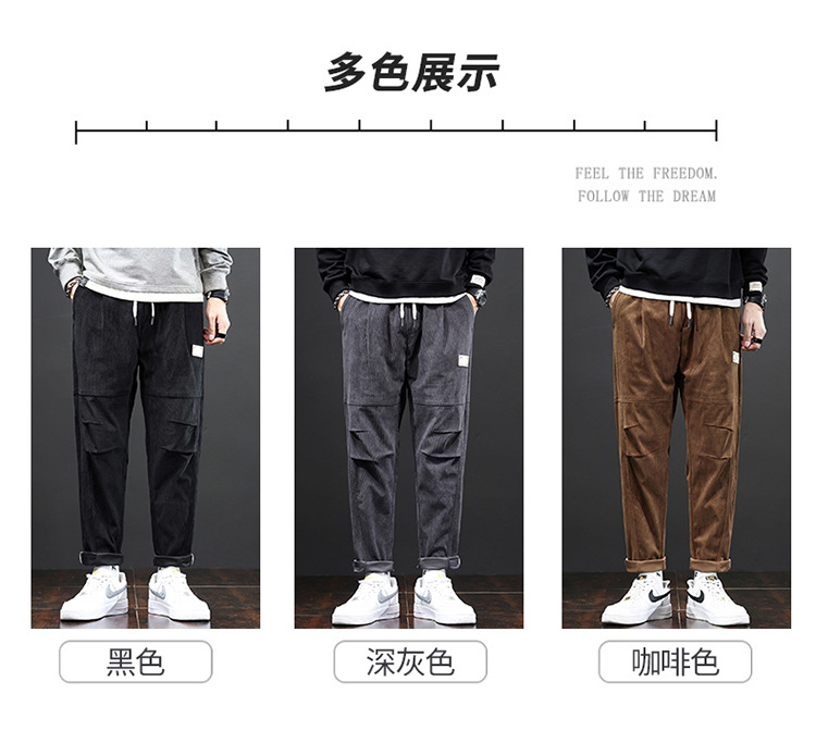 코듀로이 바지 남자의 가을과 겨울 정사이즈 일본식 유행 브랜드 느슨한 스트레이트 캐주얼 바지 트렌디 모든 매치 캐주얼 바지스토어 가기