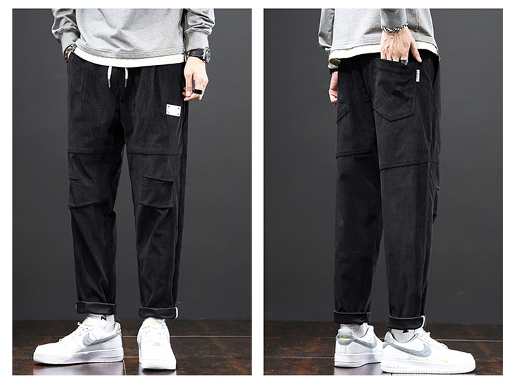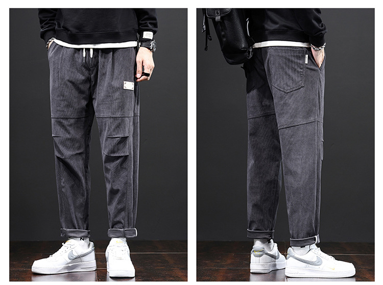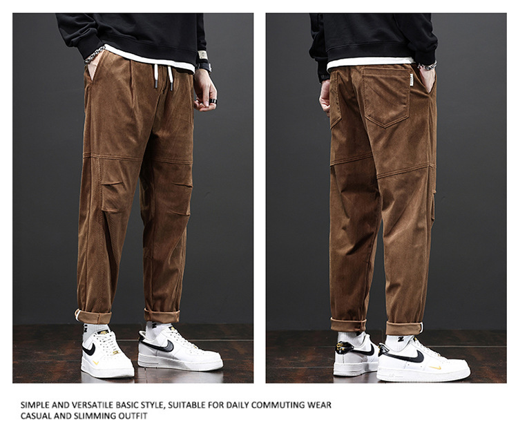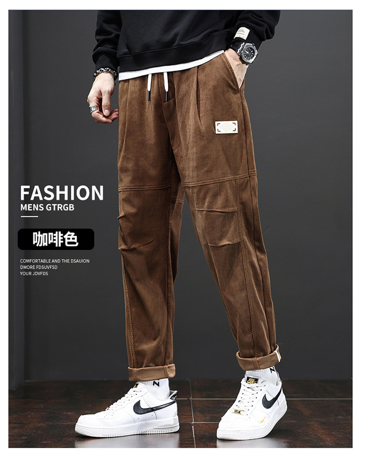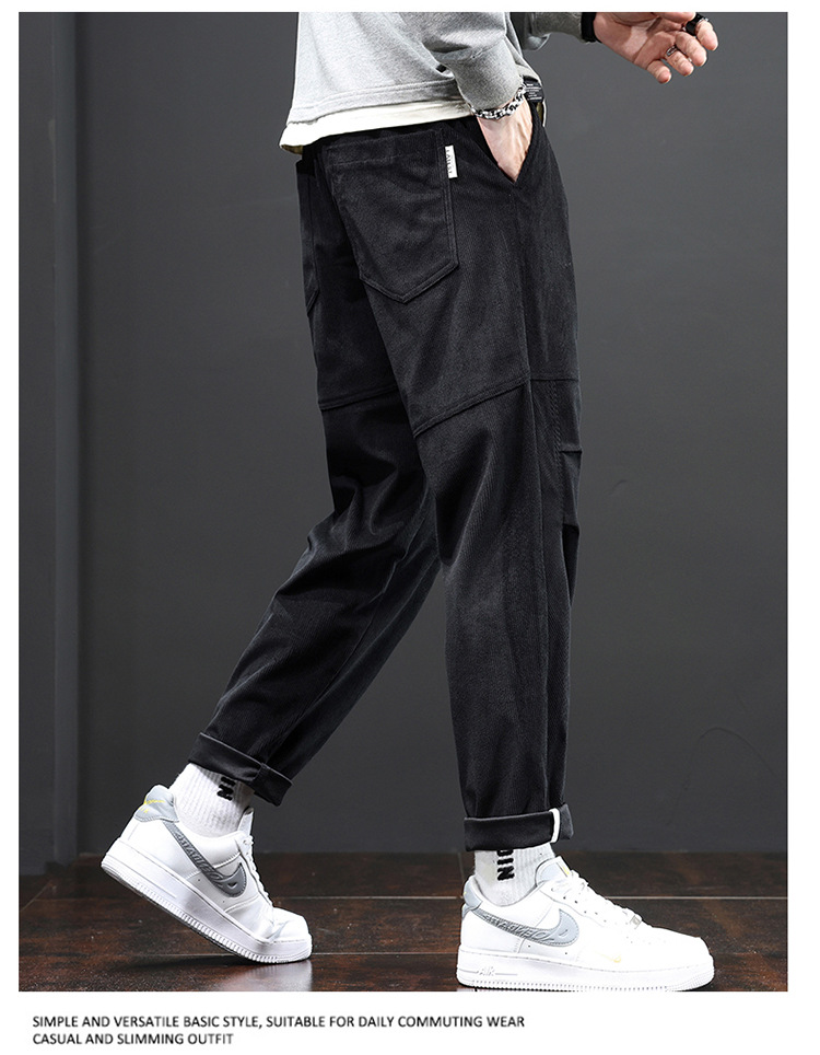 코듀로이 바지 남자의 가을과 겨울 정사이즈 일본식 유행 브랜드 느슨한 스트레이트 캐주얼 바지 트렌디 모든 매치 캐주얼 바지스토어 가기