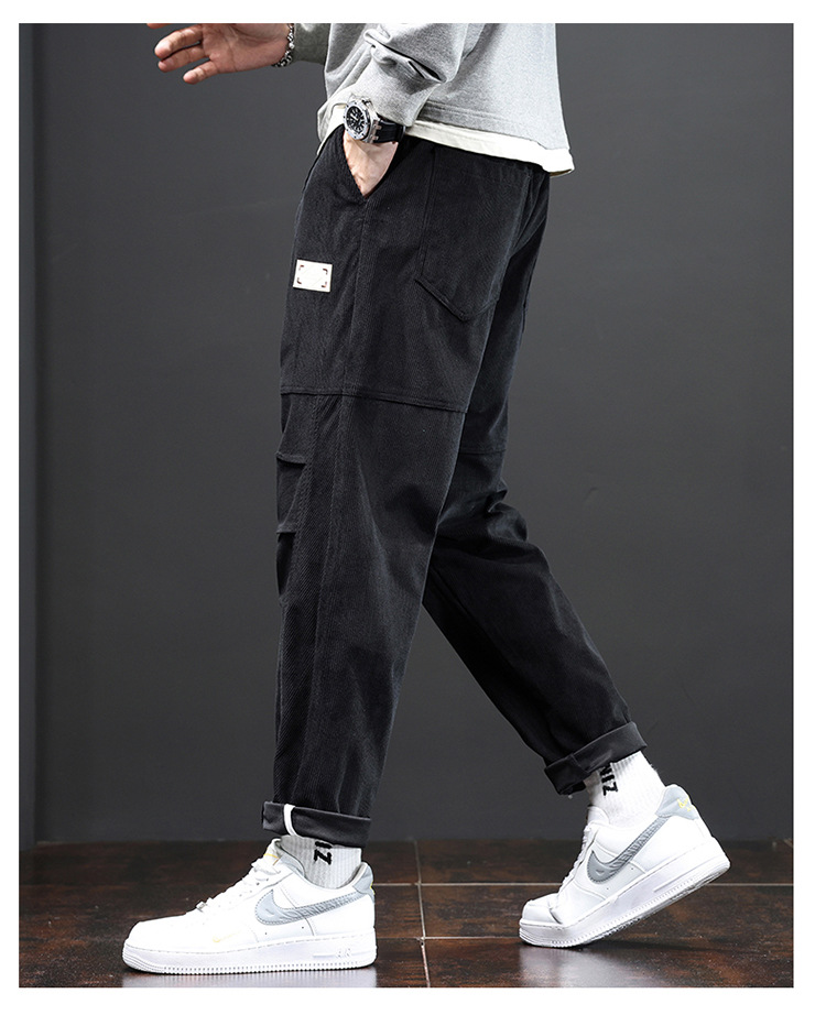 코듀로이 바지 남자의 가을과 겨울 정사이즈 일본식 유행 브랜드 느슨한 스트레이트 캐주얼 바지 트렌디 모든 매치 캐주얼 바지