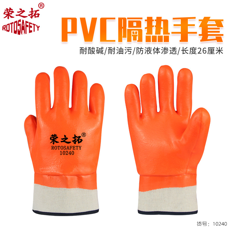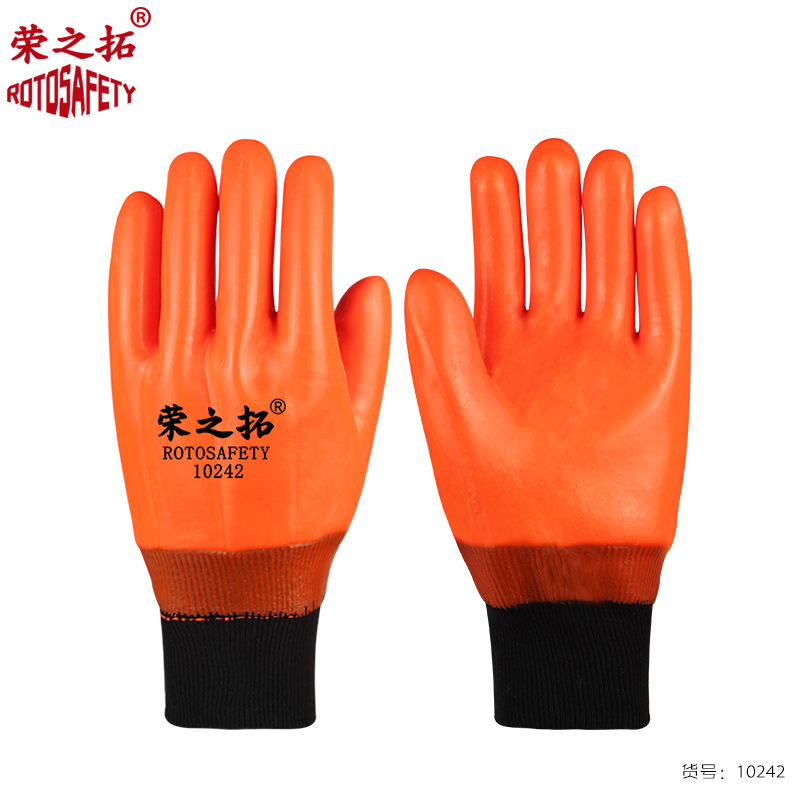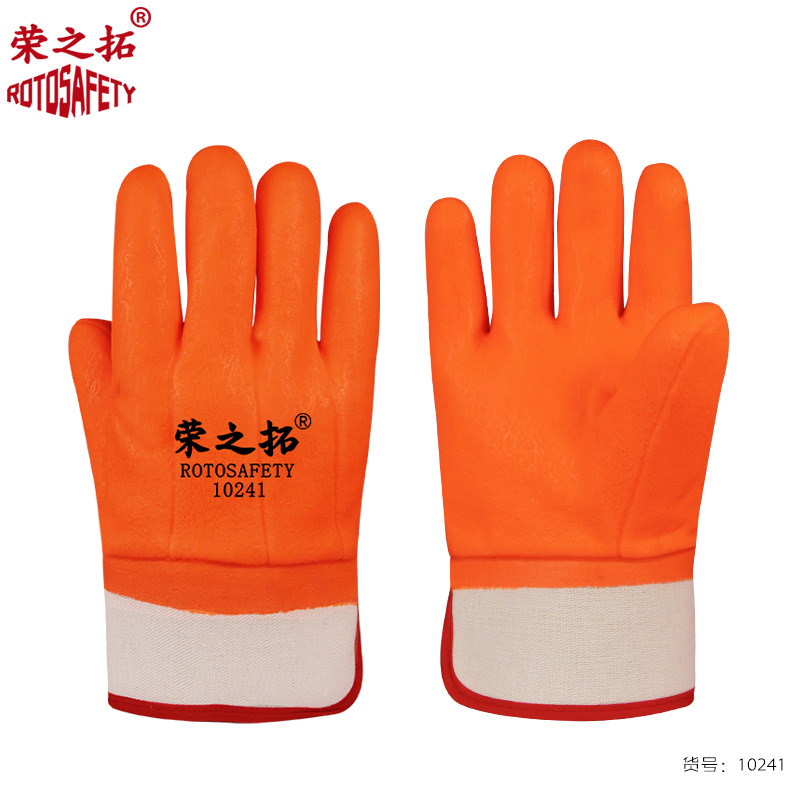 • 형광 PVC 내한성 내유성 장갑 안전 입 젖빛 표면