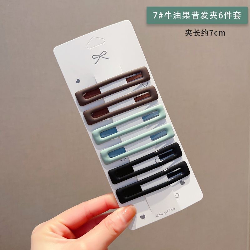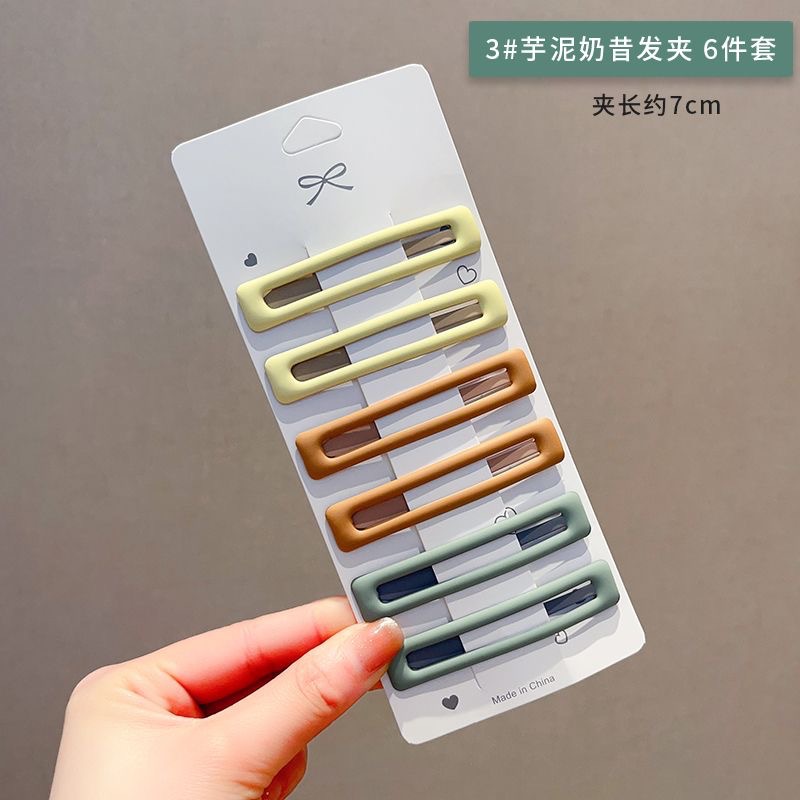 6 개 카드 세트 사각 머리핀 BB 클립 젖빛 컬러 머리핀 모자 여성용 앞머리 측면 깨진 헤어 클립 헤어 액세서리