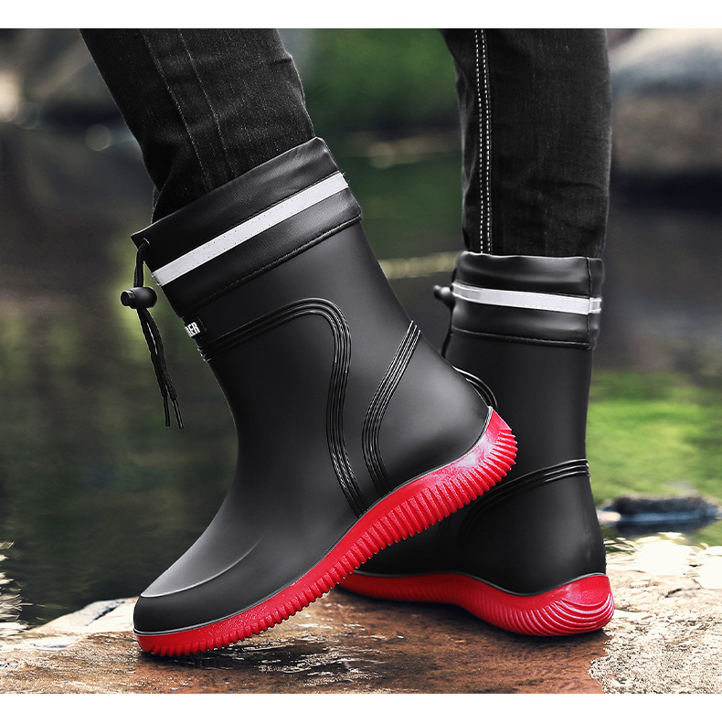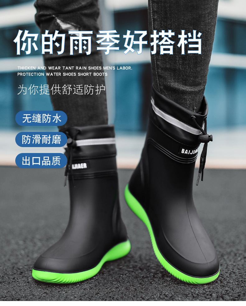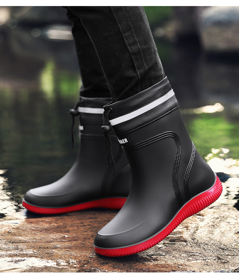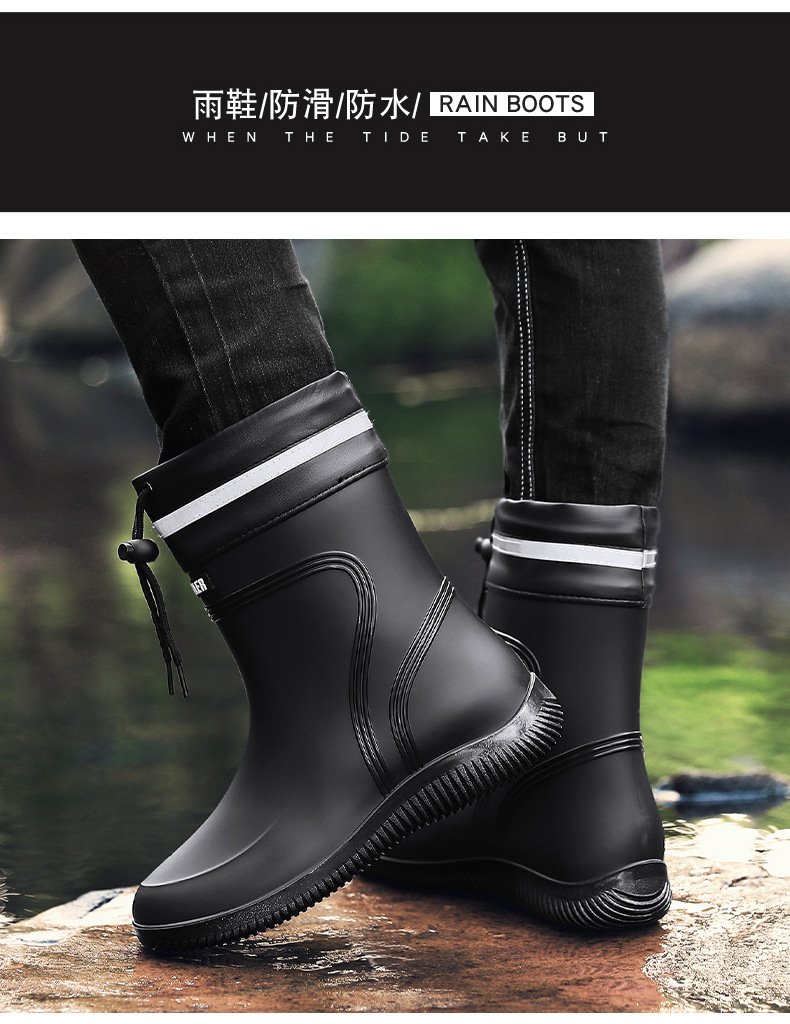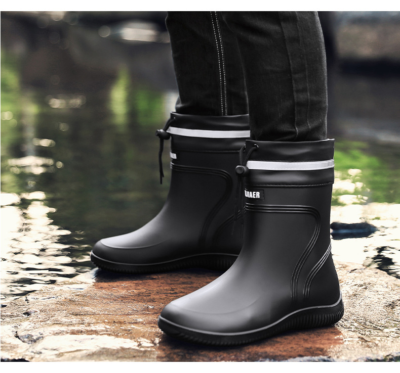 크로스 보더 방수 신발 남성과 여성의 레인 슈즈 유행 미드 배럴 패션 고무 신발 작업 미끄럼 방지 낚시 주방 장화스토어 가기