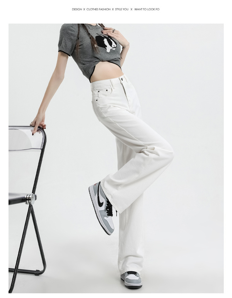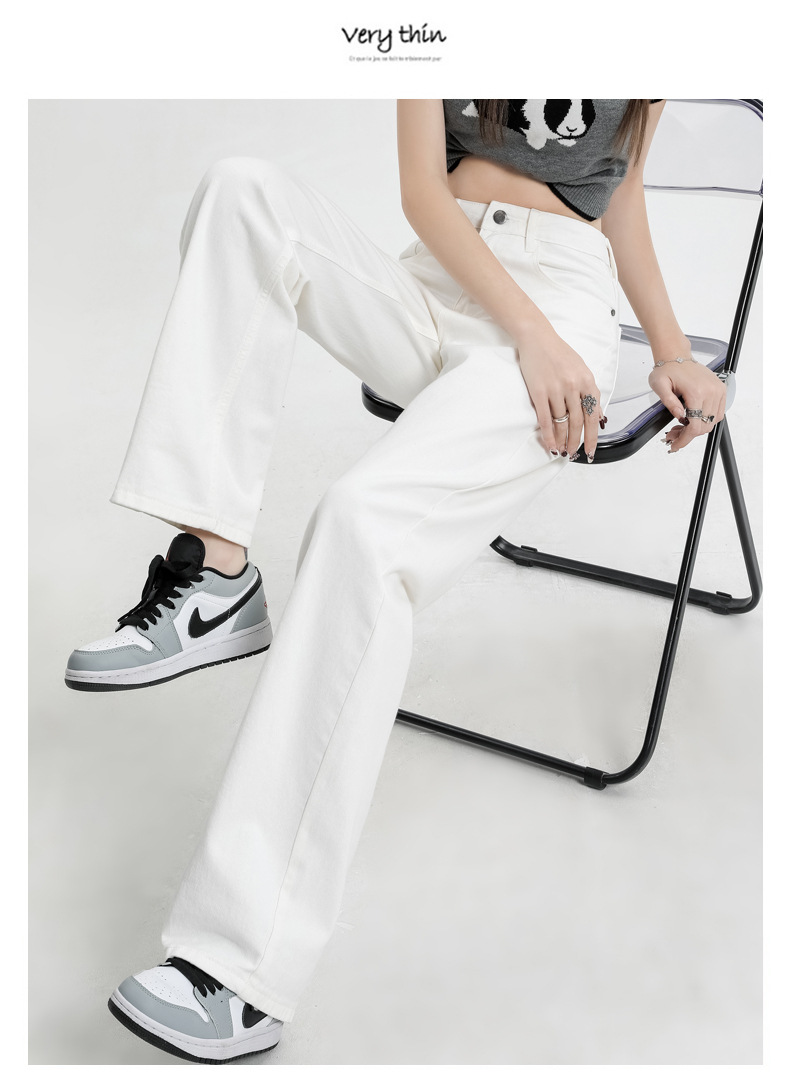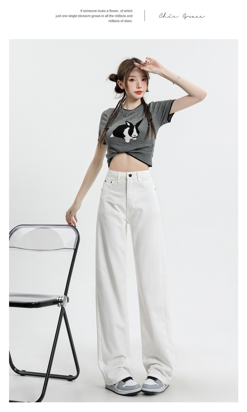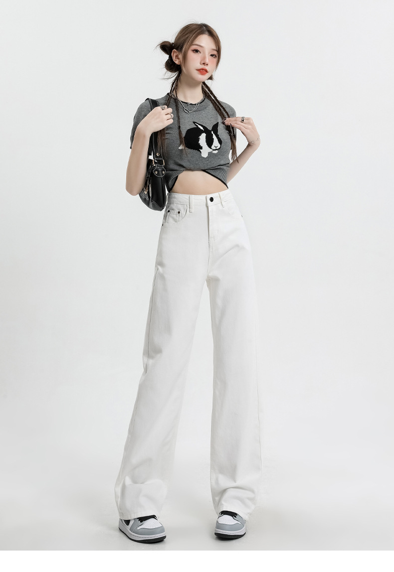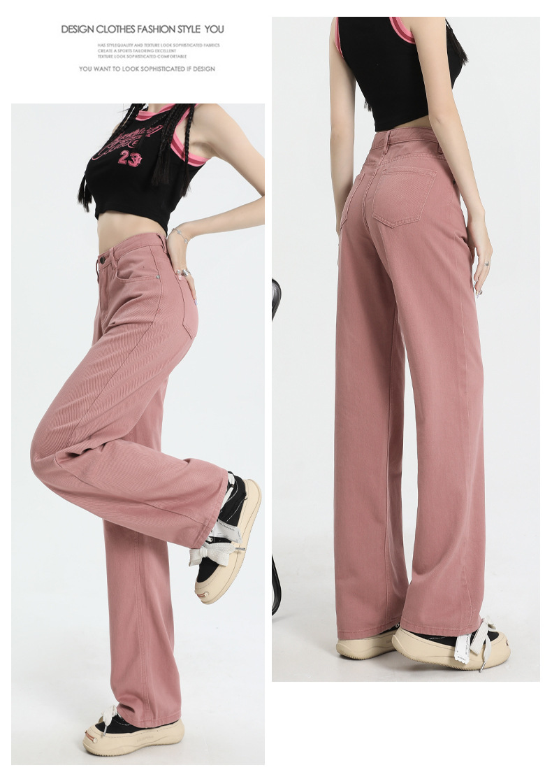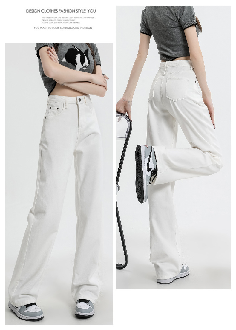 여름 하이웨이스트 루즈핏 와이드 데님 팬츠 여성용, 드레이프한 스트레이트 와이드 팬츠, 데님 롱 팬츠, 다리가 길어보이는 우아한 통근 스타일