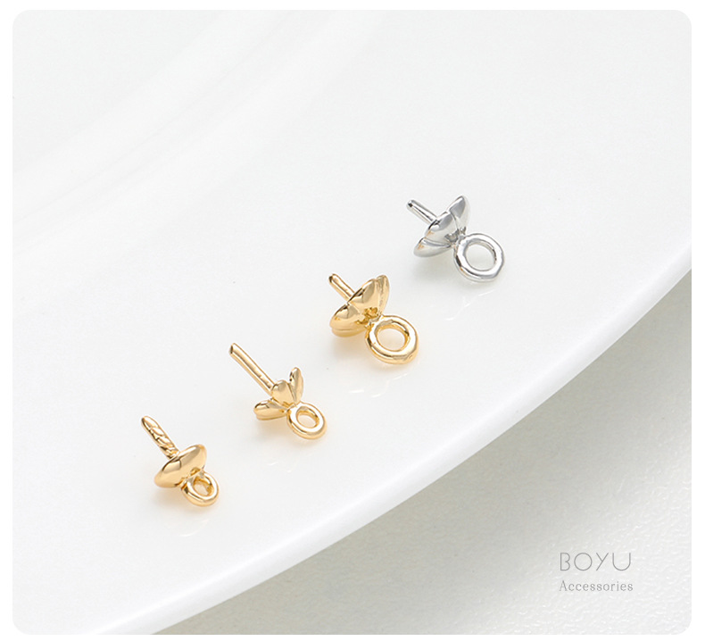 14K 골드 컬러 보존 18K 하프 홀 진주 펜던트 비드 홀더 양 눈 네일 수제 DIY 보석 소재 펜던트 액세서리스토어 가기