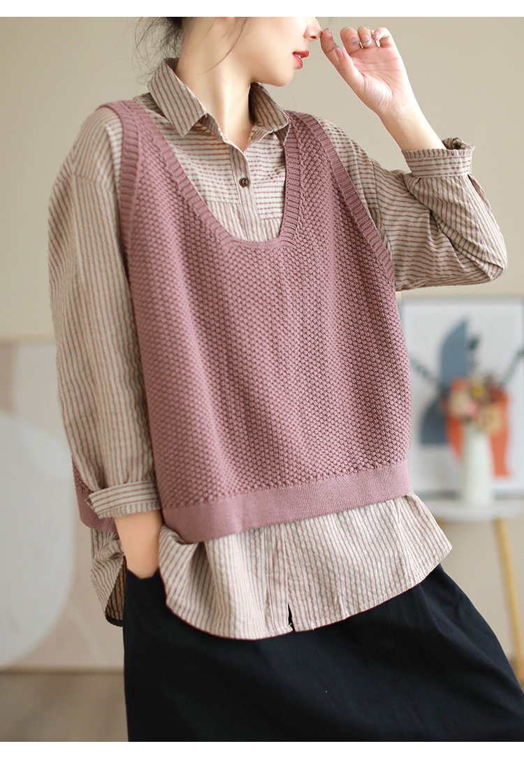 Zimo 23 가을 새로운 니트 조끼 여성용 단색 대형 V-넥 조끼 느슨한 캐주얼 모든 매치 풀오버 탑