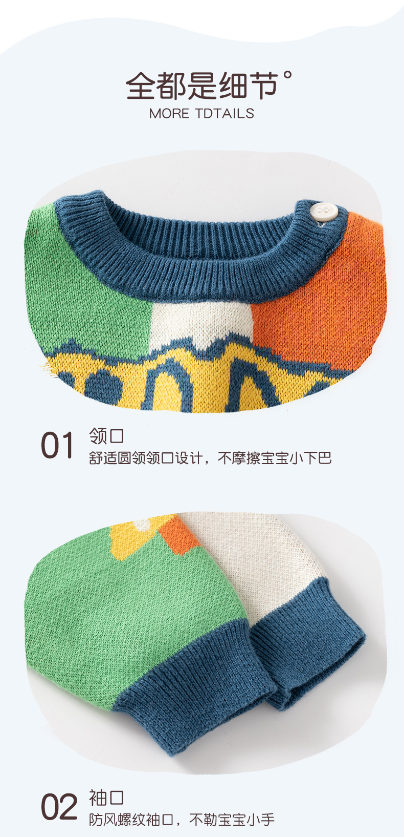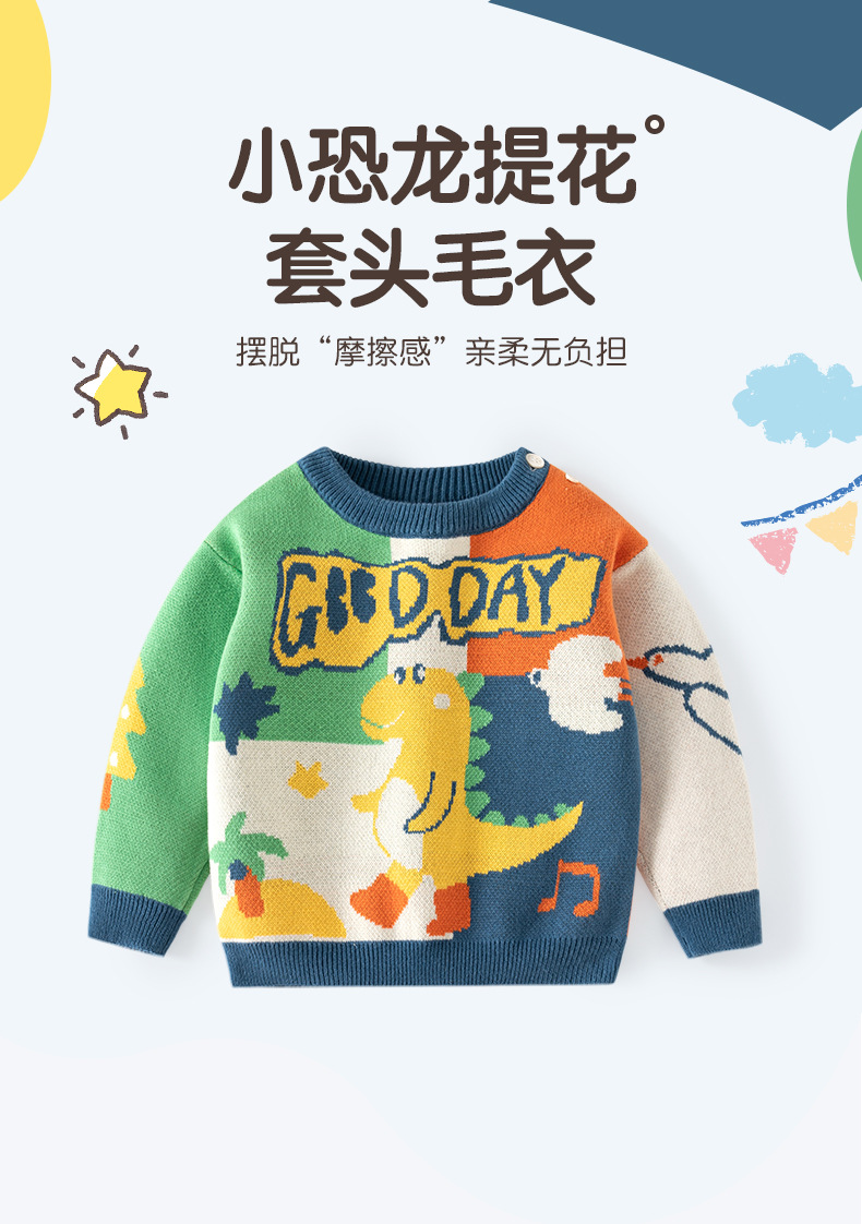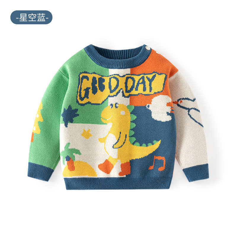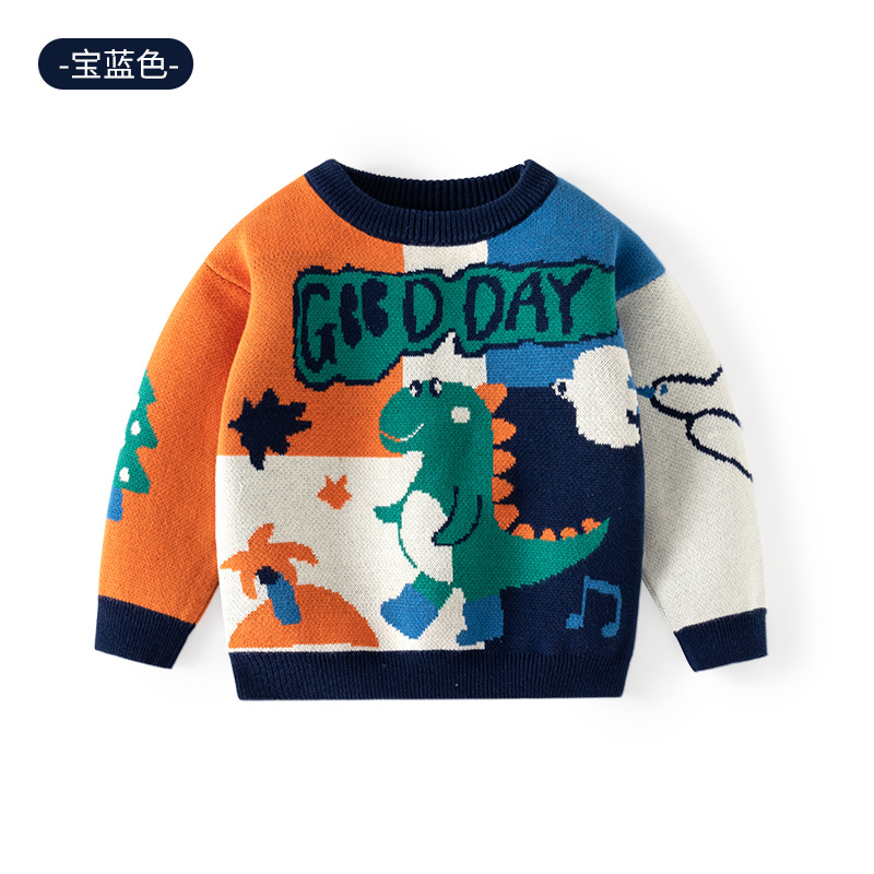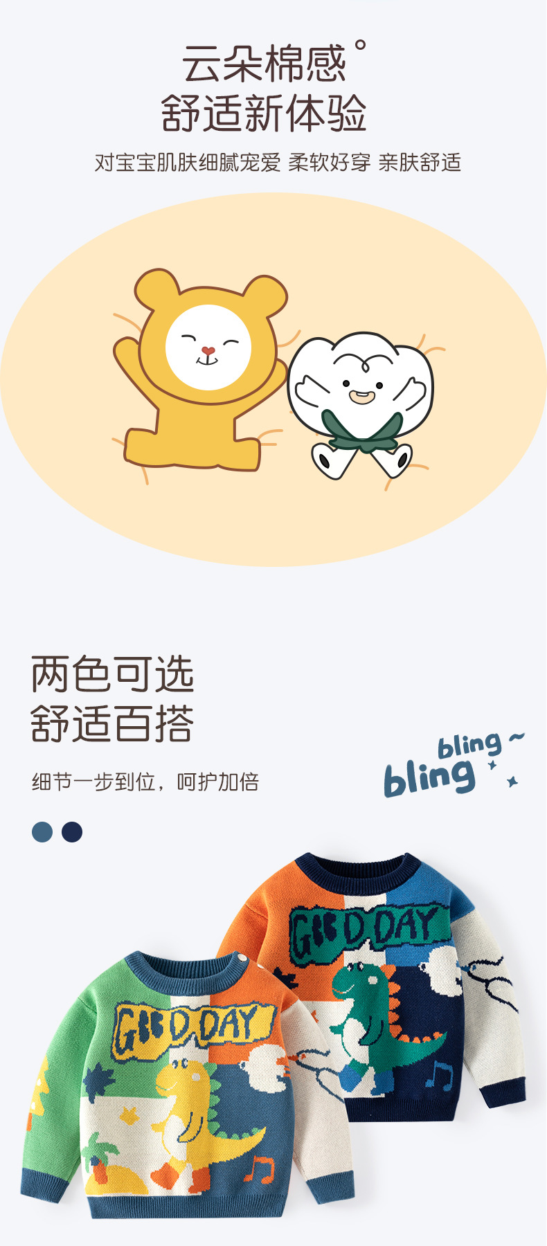 참깨 바닥 만화 작은 공룡 클래스 A 아기 스웨터 가을, 겨울 순수 코튼 니트 아동 스웨터 한국 스타일 소년 스웨터스토어 가기