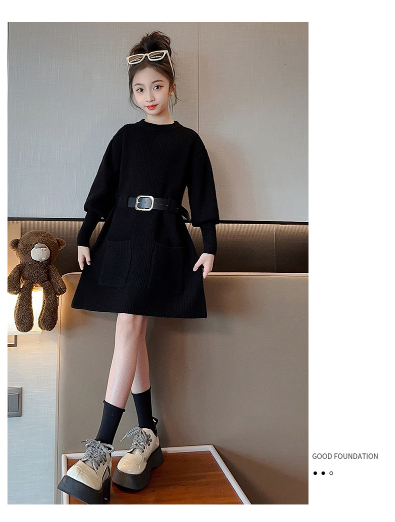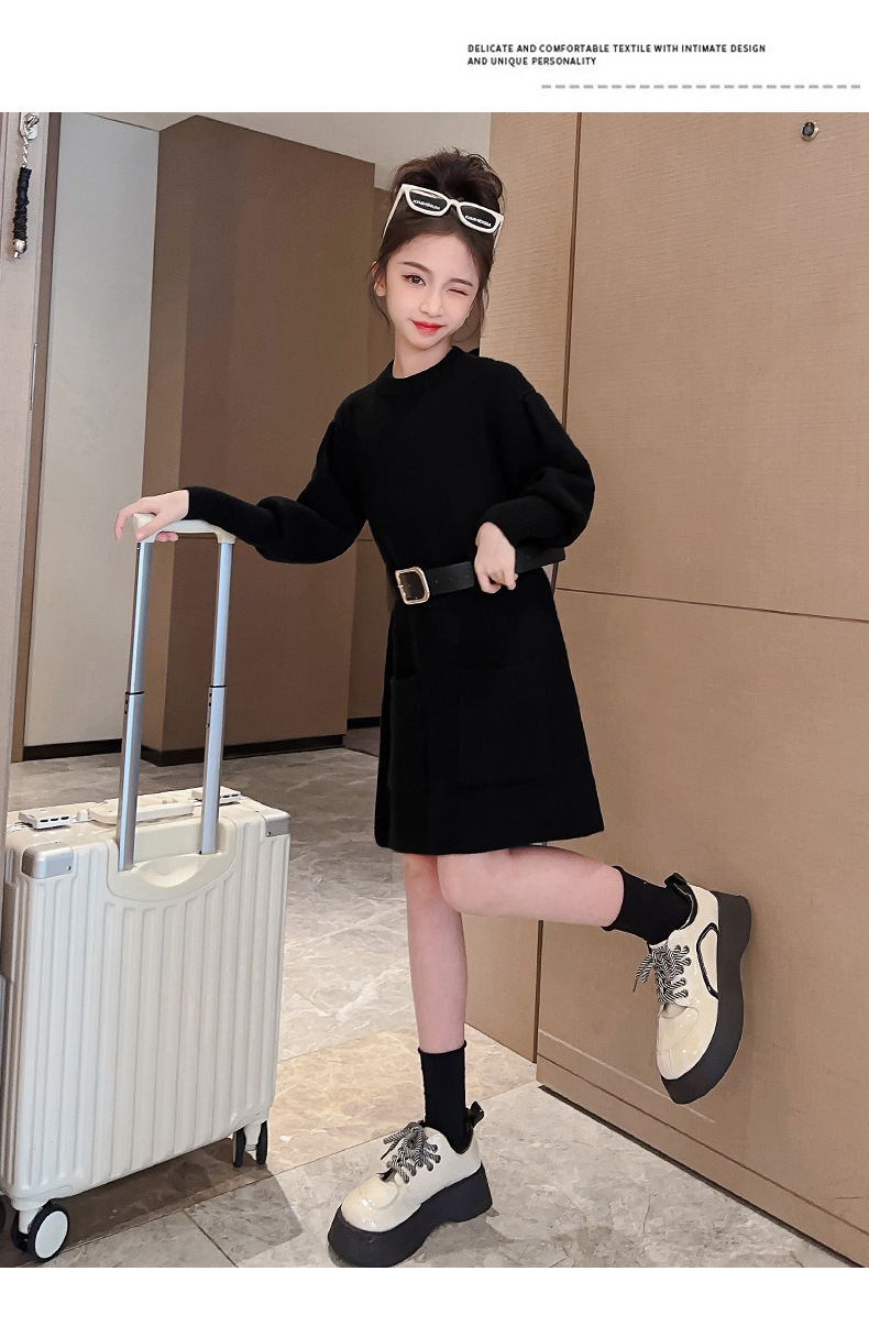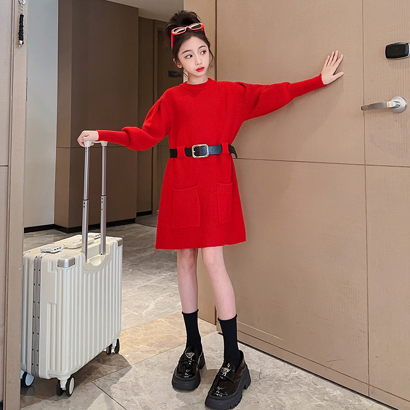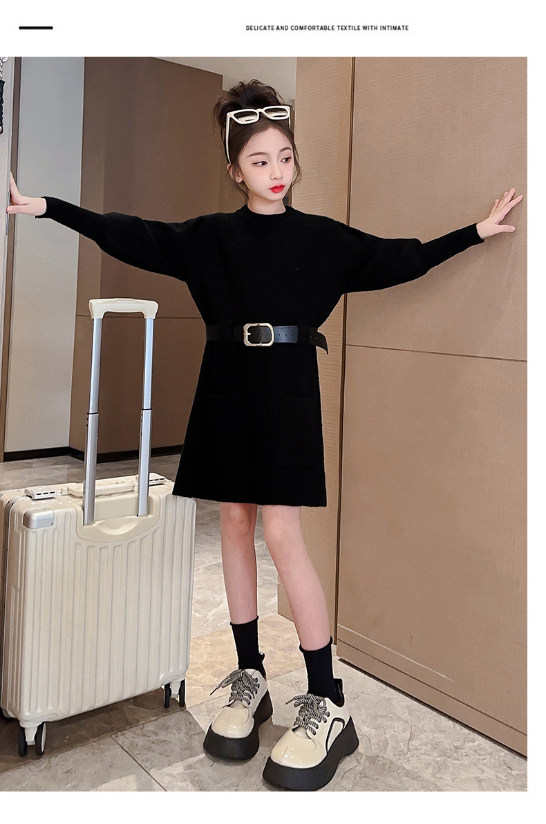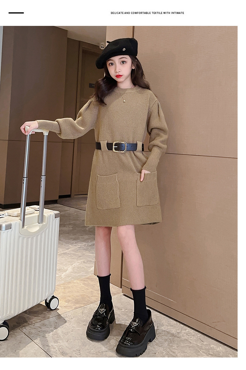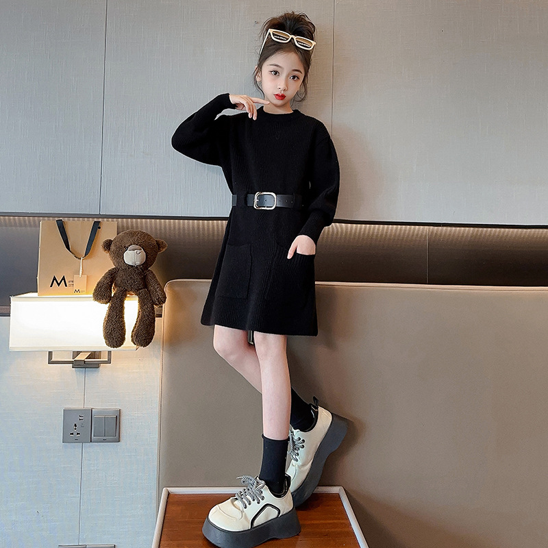 여아 가을 겨울 스웨터 드레스 2025 신상 한국 스타일 중대형 아동 니트 원피스 어린이 중장형 이너웨어