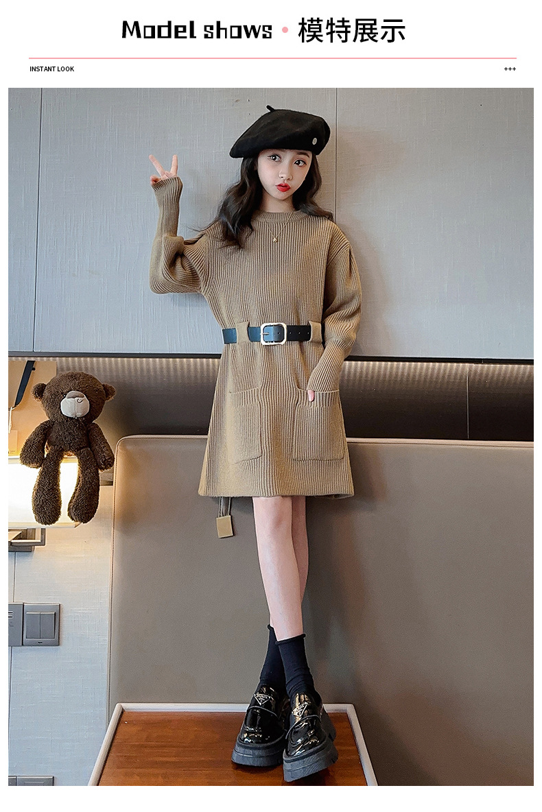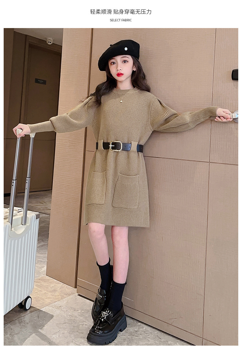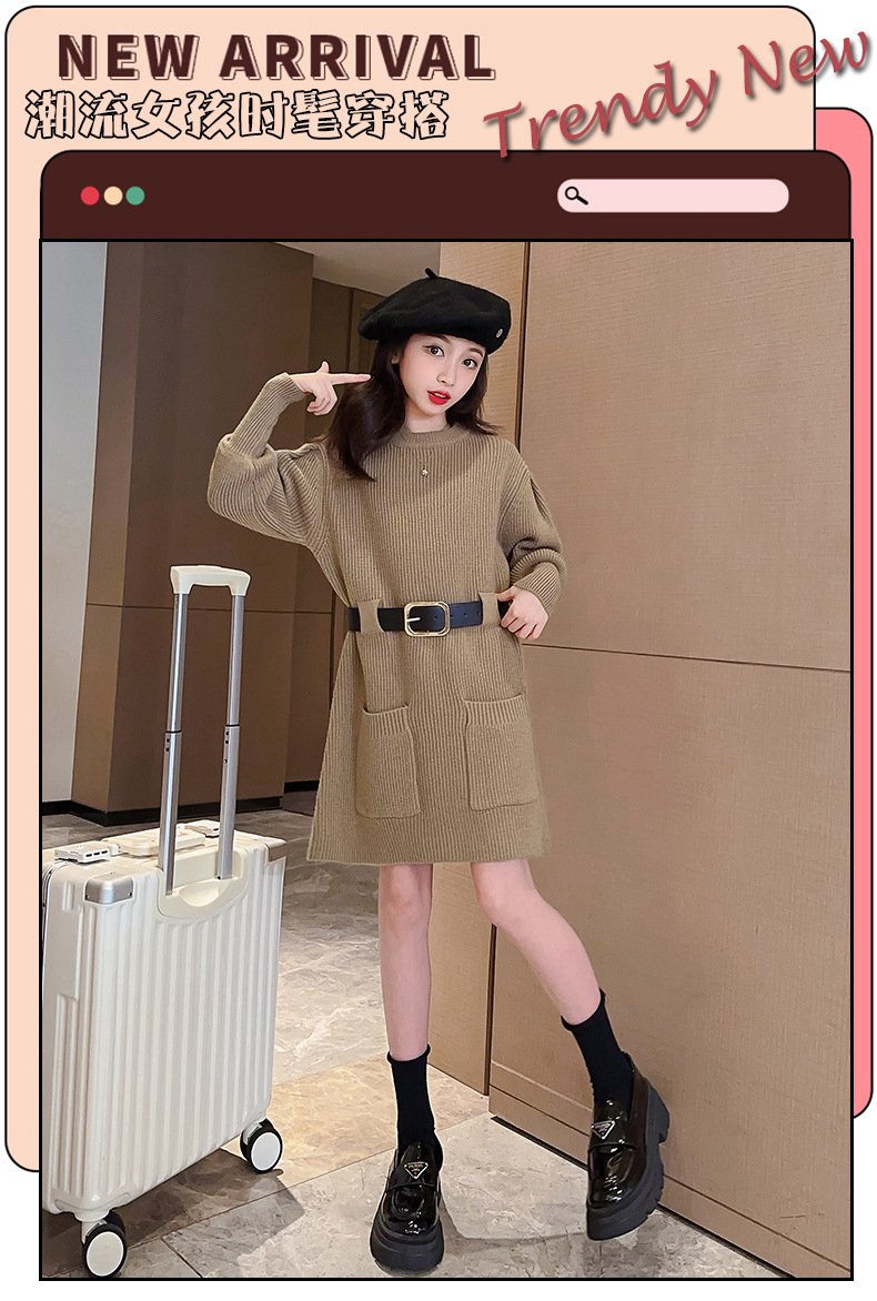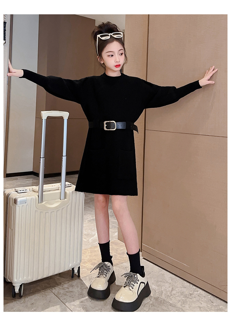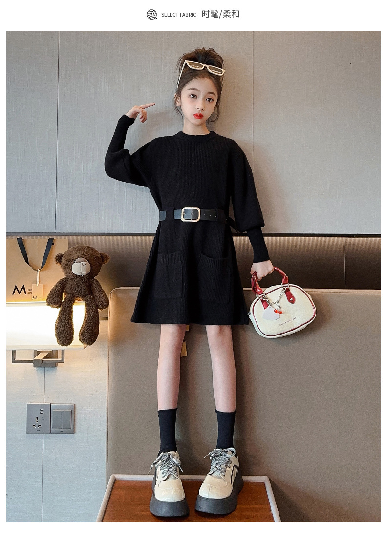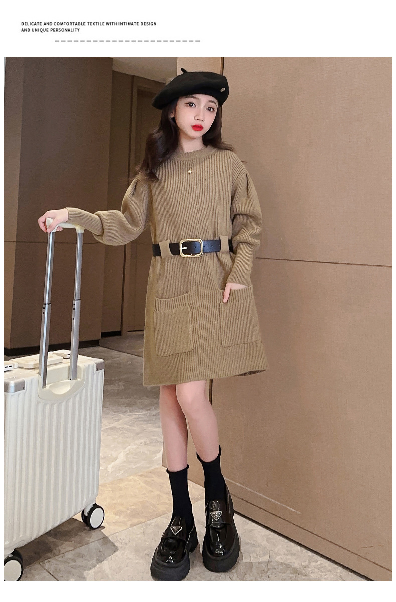 여아 가을 겨울 스웨터 드레스 2025 신상 한국 스타일 중대형 아동 니트 원피스 어린이 중장형 이너웨어