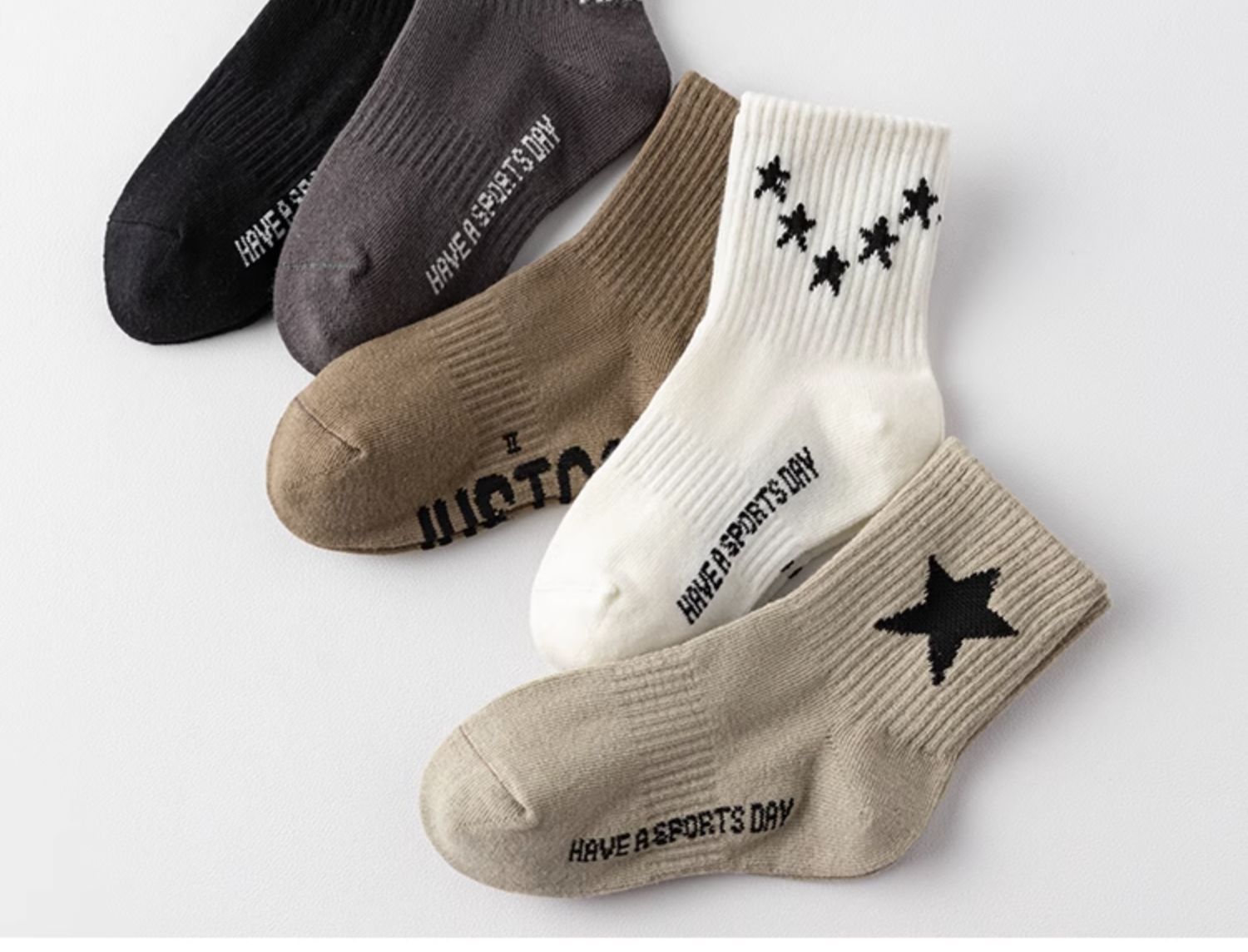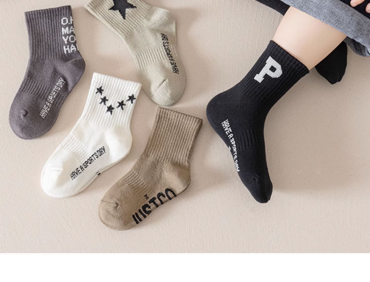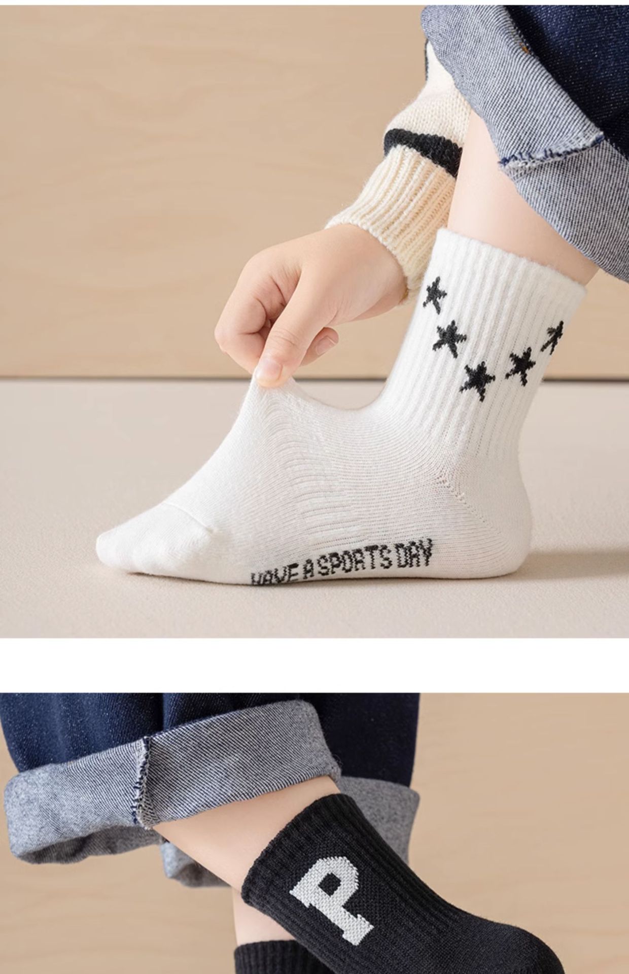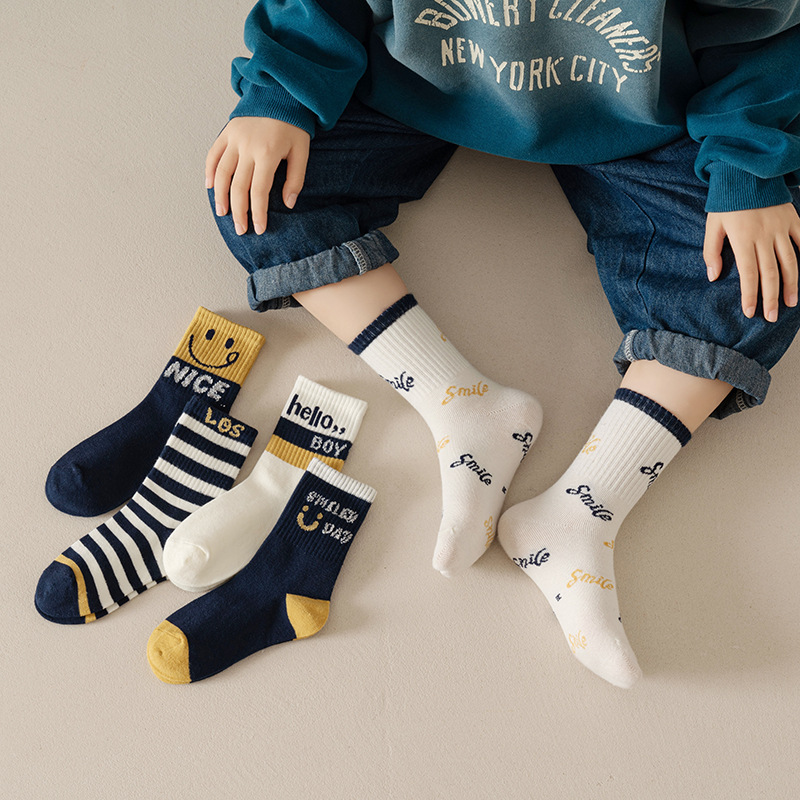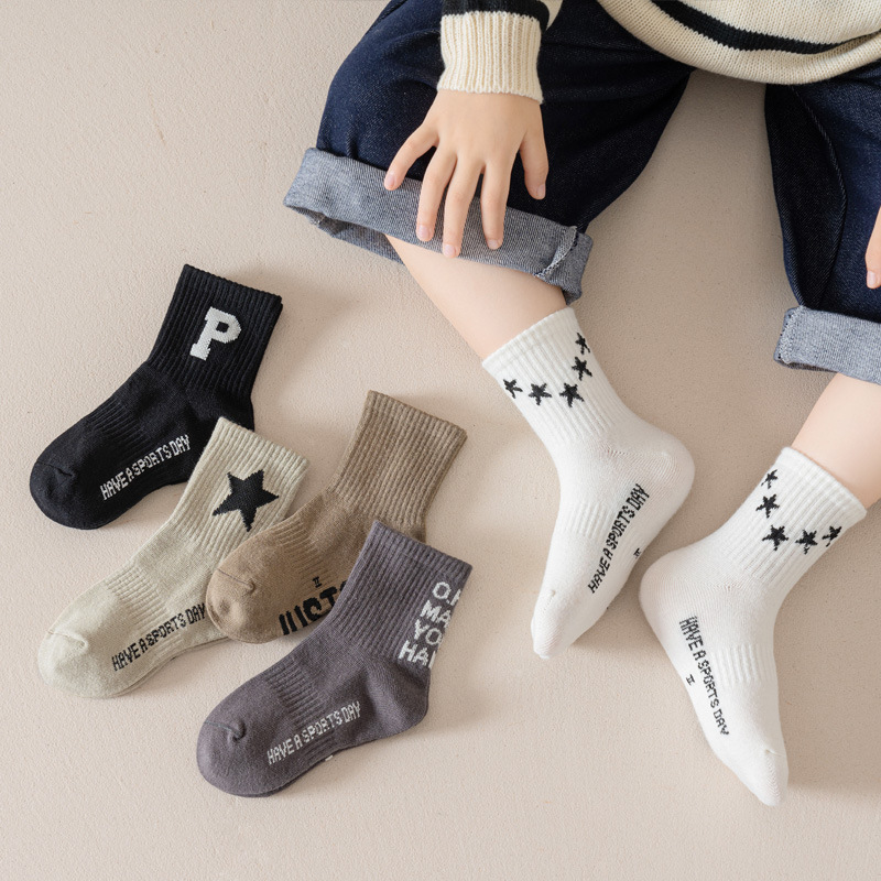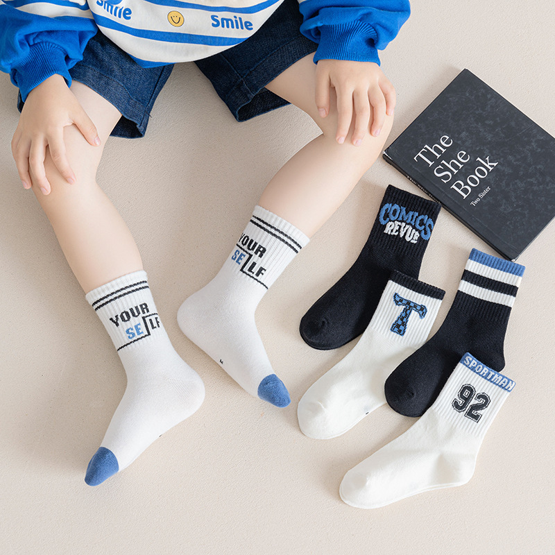 새로운 어린이 양말 봄과 가을 중간 길이 양말 한국 스포츠 통기성 면 양말 소년 소녀스토어 가기