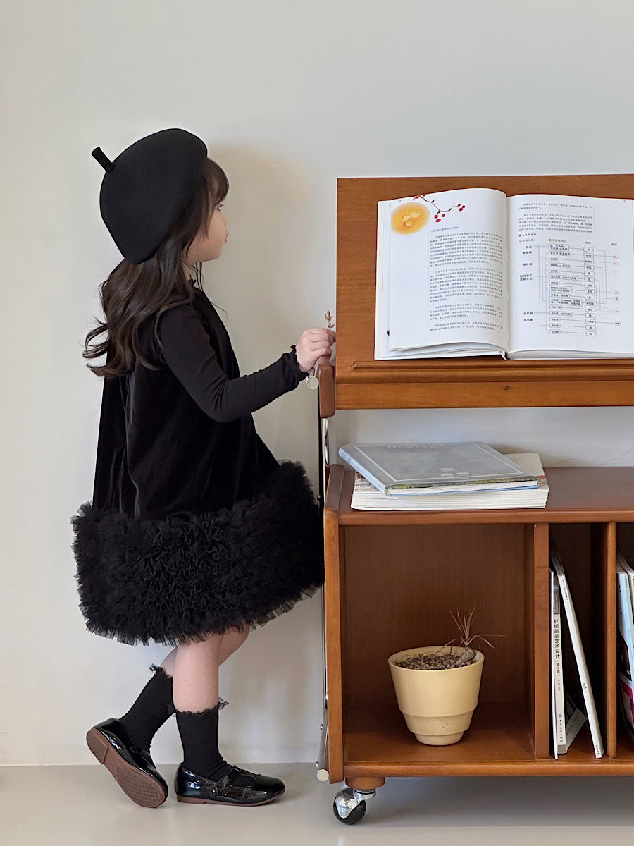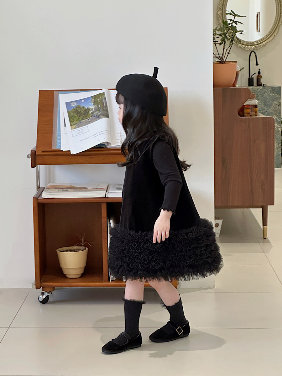 • 블랙 벨벳 패치 워크 조끼 원피스